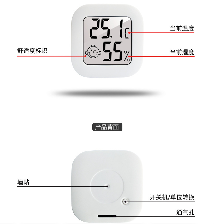 迷你笑脸电子温湿度计 家庭办公液晶温湿度测量仪双面胶