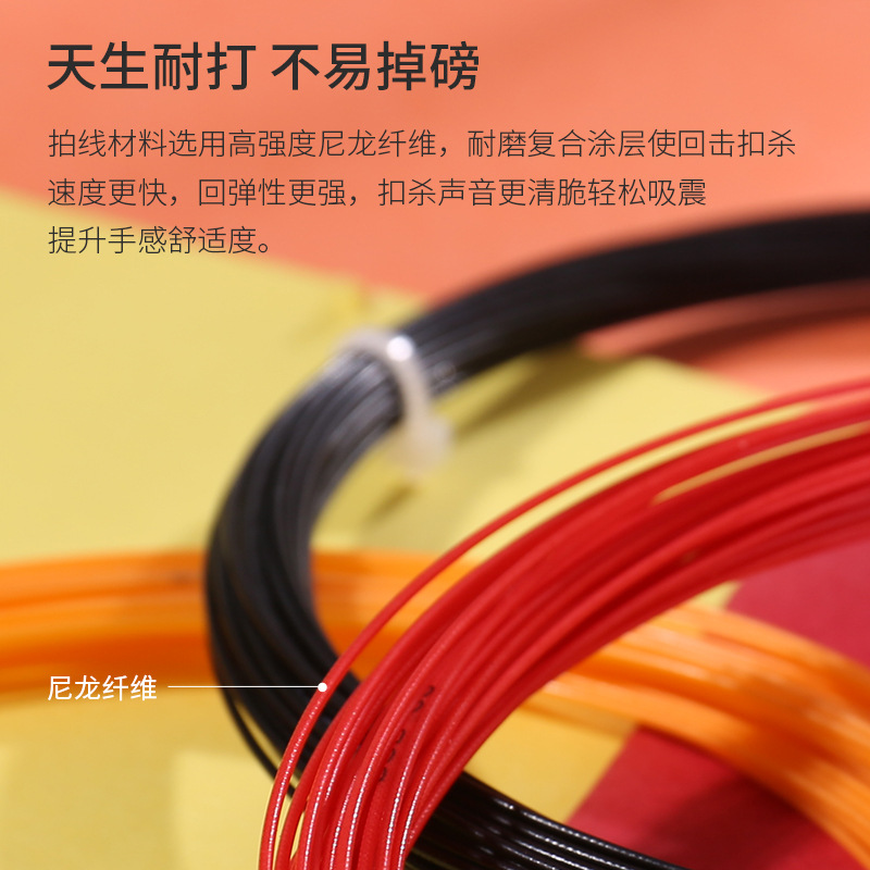 羽毛球线一条是10.3米长度!足米穿一个球拍有余!线材软硬度适中不涩不滑!好穿线过线轻松不易卷线!