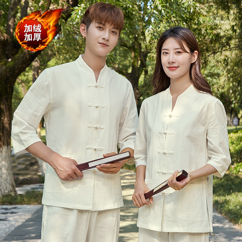 Утолщенная одежда для чая дзен на флисовой подкладке, хлопковая и льняная одежда для медицинских техников, Комбинезоны для прижигания ханьфу, одежда для чайной церемонии, поколение волос