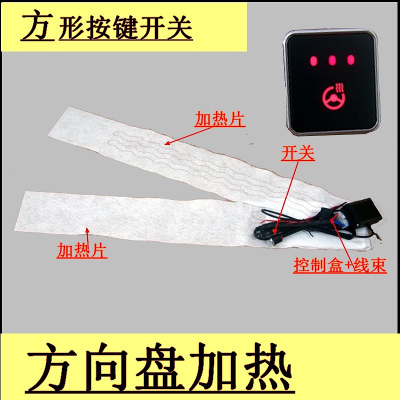 (Квадратный 3-ступенчатый кнопочный переключатель) Комплект для обогрева рулевого колеса автомобиля