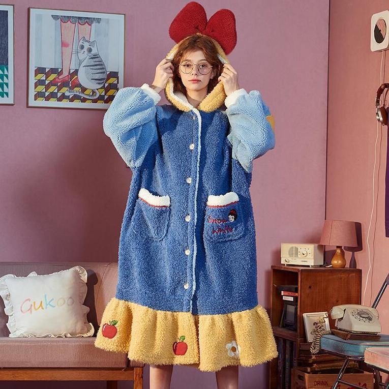 Белоснежная Пижама, Женская Весенняя, осенне-зимняя ночная рубашка из кораллового флиса с длинным рукавом, новая утолщенная Милая бархатная ночная рубашка-Халат