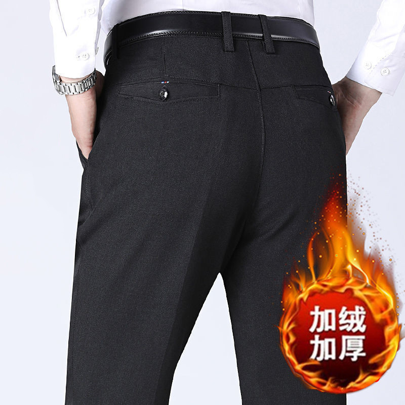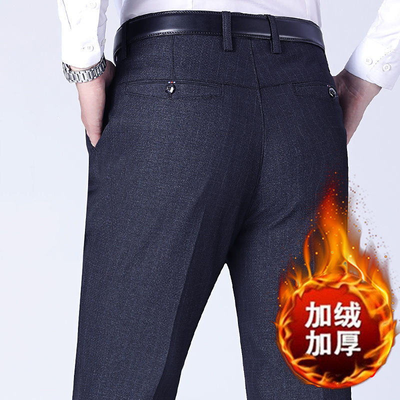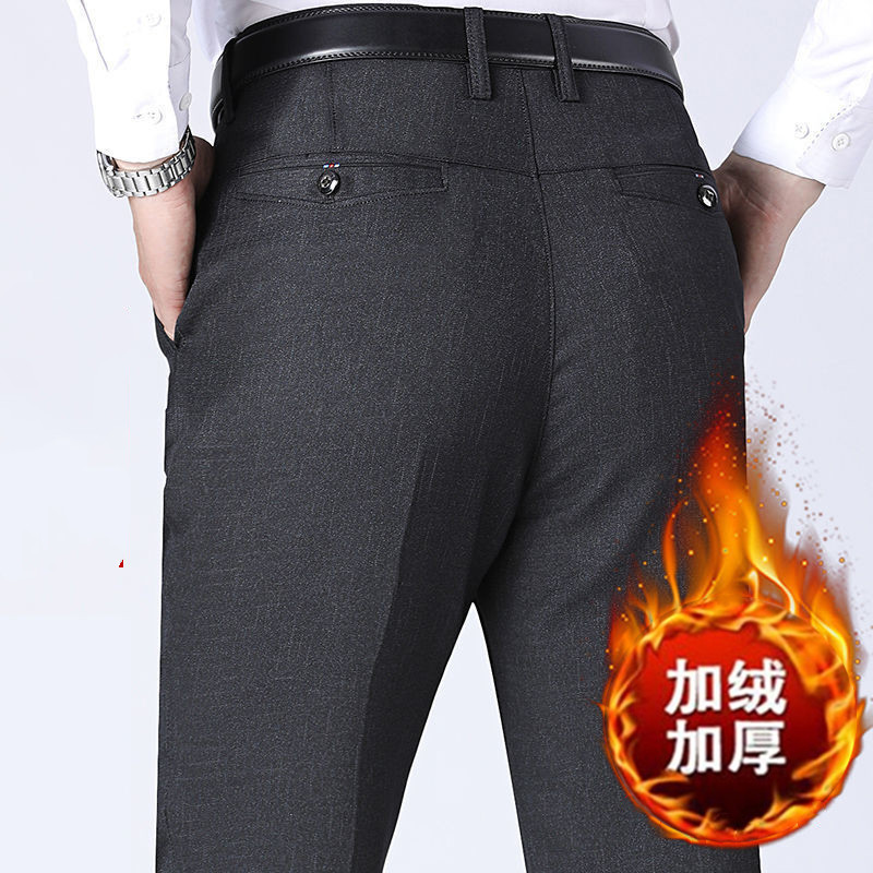 Осенне-зимние мужские брюки в стиле вестерн, повседневные брюки на флисовой подкладке, мужские брюки в стиле вестерн для мужчин среднего и пожилого возраста, свободные толстые брюки, мужские прямые брюки
