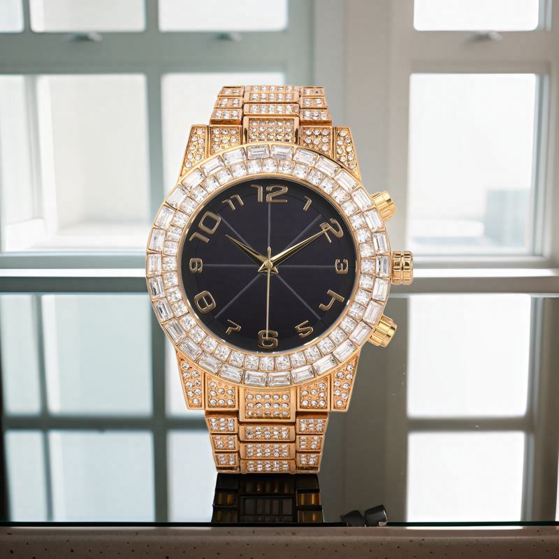 Фабричные индивидуальные немецкие и японские двухдиапазонные солнечные радиочасы, модный золотой корпус с бриллиантами и цифровые часы с радио для мужчин