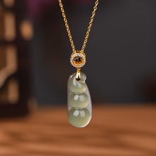 S925 серебряные инкрустированные натуральные гетанские нефритовые счастливые серьги-гвоздики