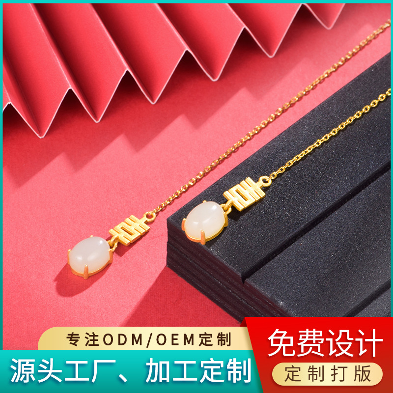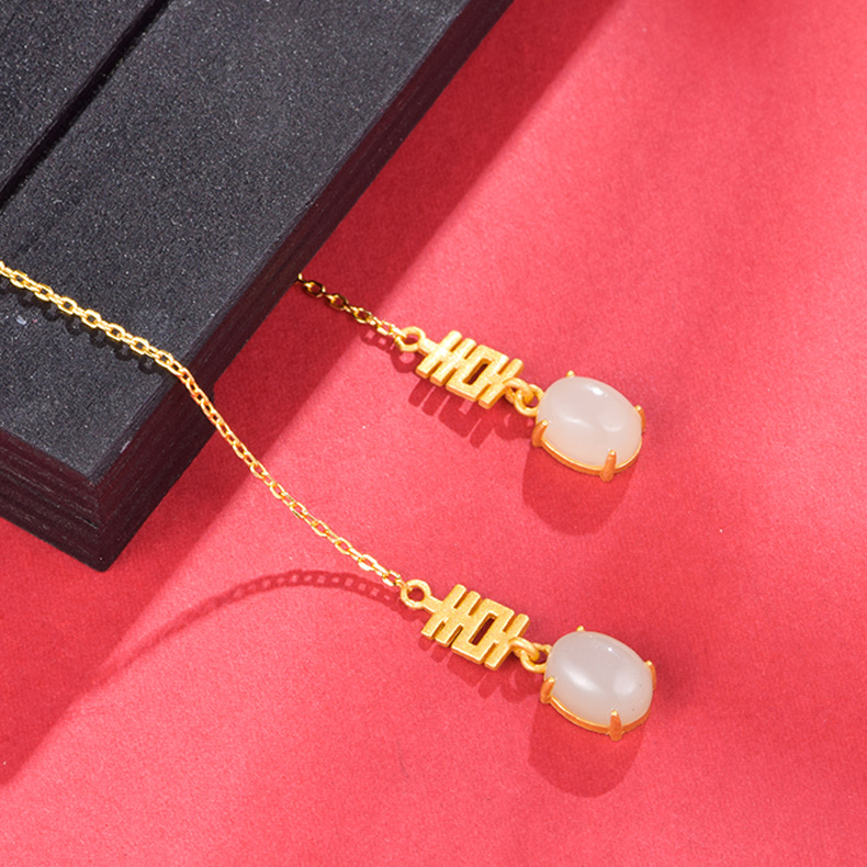 Cabas S925 инкрустированные серебром натуральный гетанский нефрит счастливые слова Серьги Национальный прилив индивидуальные серьги производители на заказ оптовый заказ