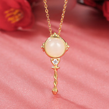 S925 Серебряный инкрустированный натуральный гетанский нефрит счастливое слово ушной крючок