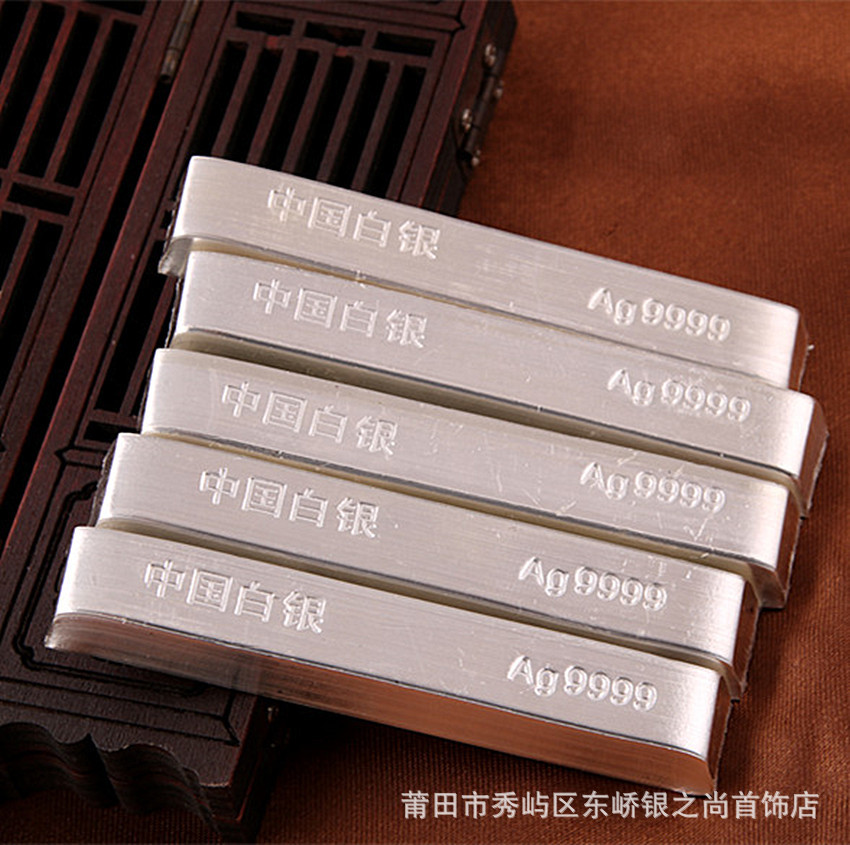 4、用途:白银材料银条是金银首饰加工店、加工厂、DIY手工银饰店的银匠可以根据客户不同需求进行手镯、戒指、项链、手链等各种纯银制品的加工,使用加工方便,也可以做为投资升值的理财产品。