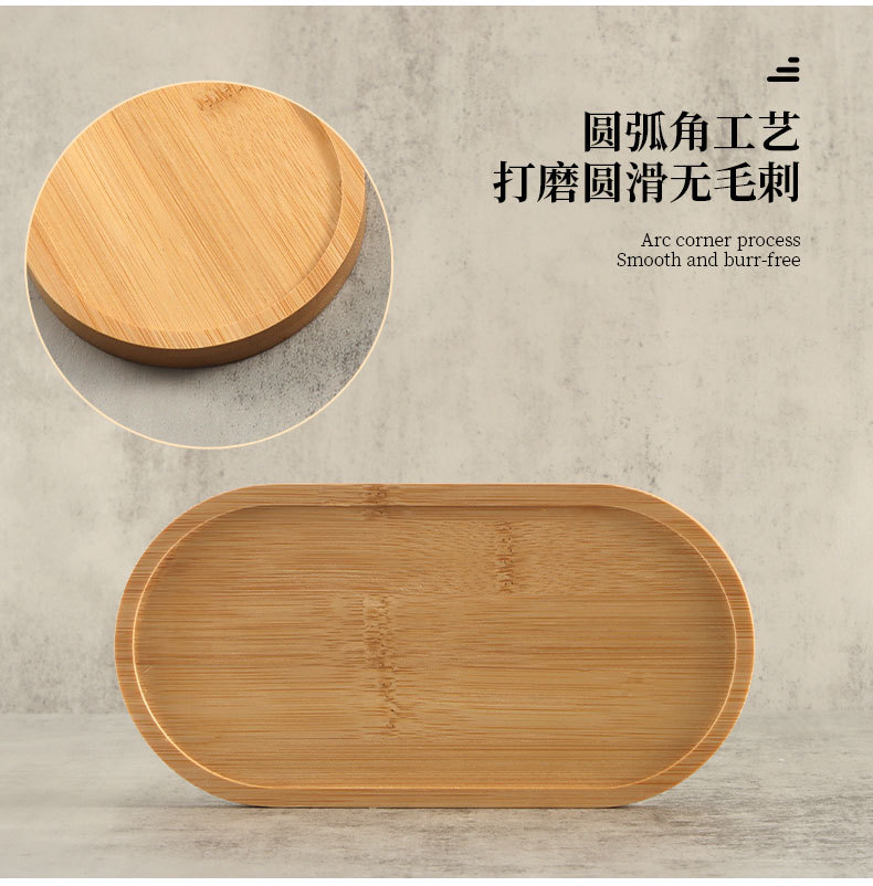 日式竹木托盘圆形木盘餐盘竹制茶盘餐厅酒店木质水果托盘茶壶托盘