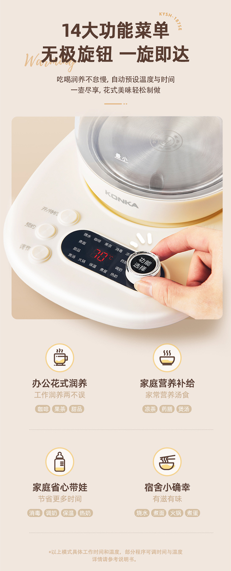 Модель с ручкой 1,8 л +316, пищевой класс; Модель с ручкой 1,8 л + пищевой класс 316 (с фильтром); 1,8 л белый +304 пищевой (горячая модель); 1,8 л цвет лотоса + 304 пищевой класс; 1,5 л красного хурма +304 пищевой; Флагманская модель чайника Qingyin объемом 1 л (титановое шасси + фильтр + двойной цифровой дисплей); 1л белый +304 пищевой; Ведро для цветочного чая 3 л + пищевой класс 304; Модель цветной коробки объемом 1,5 л (торговая марка Xiaohuaxian); Основные подарки (подарочная коробка Furui Ankang, чайник + чайные листья)