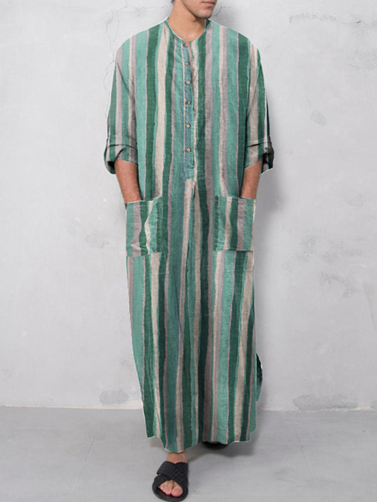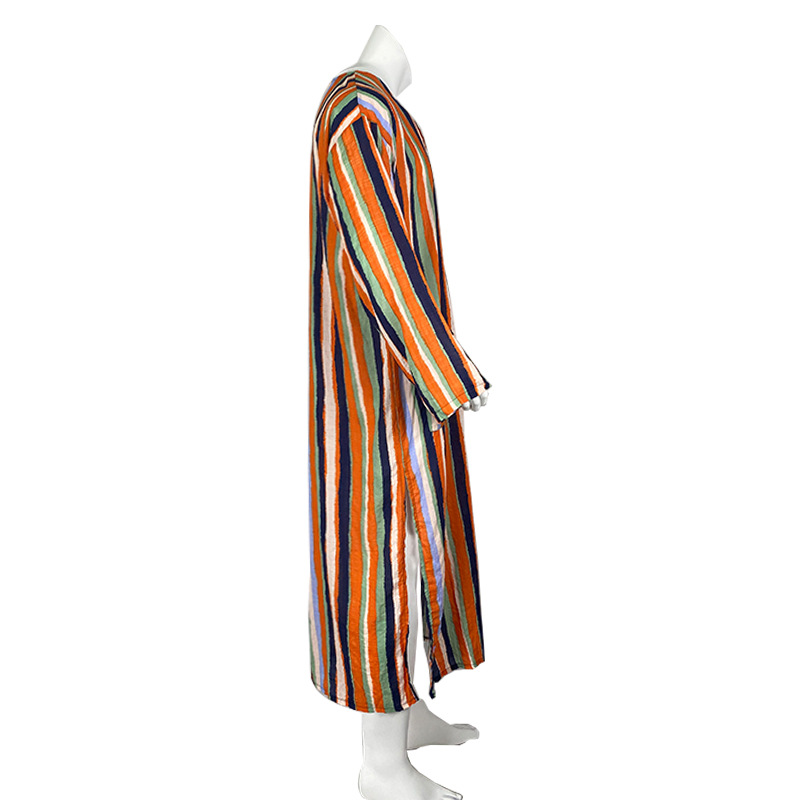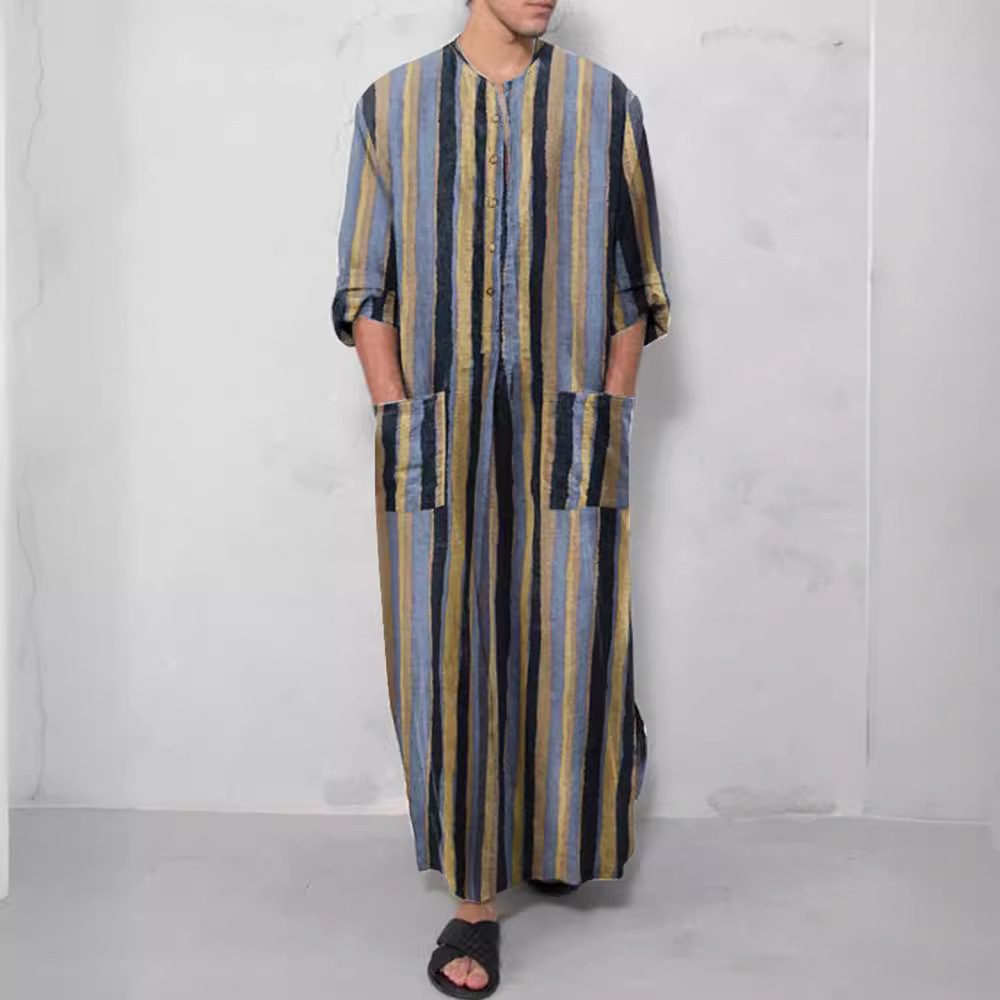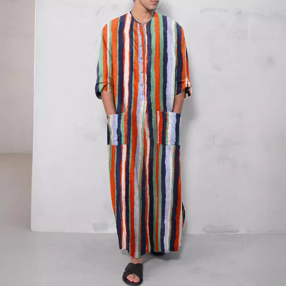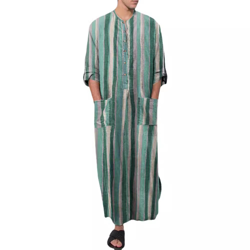 Мусульманский халат, мужская арабская одежда, свободный полосатый комбинезон в этническом стиле с длинными рукавами, свободный и удобный