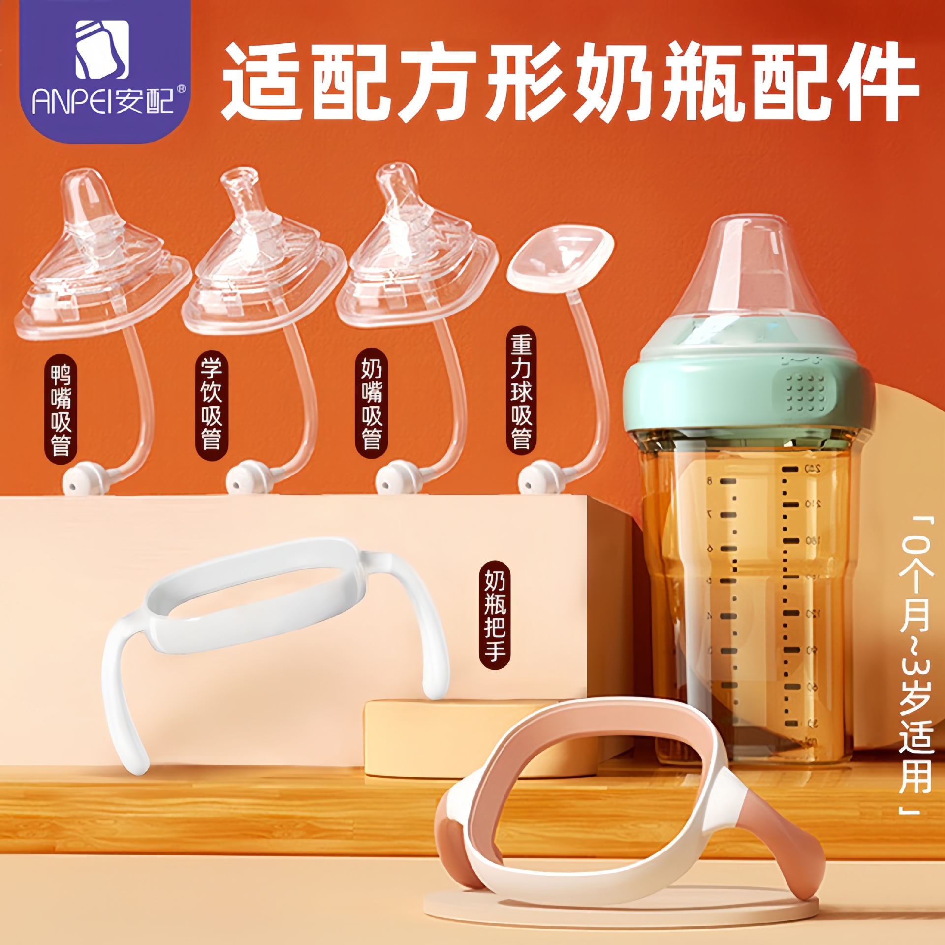 Оснащен универсальными аксессуарами для бутылочек Hegen: квадратная трубочка, ручка, носик для обучения питью, соска-«утиный клюв», гравитационный шарик, трубочка для прямого питья.