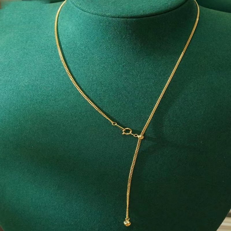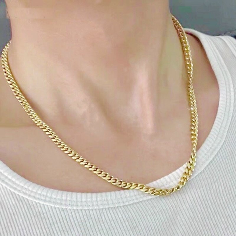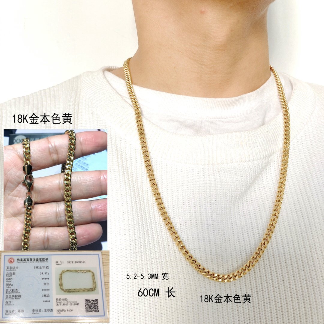 18-каратное ожерелье, настоящее золото, желтая боковая цепочка, 60 см, кубинская цепочка, регулируемая в европейском и американском стиле, для женщин и мужчин, Amazon Export