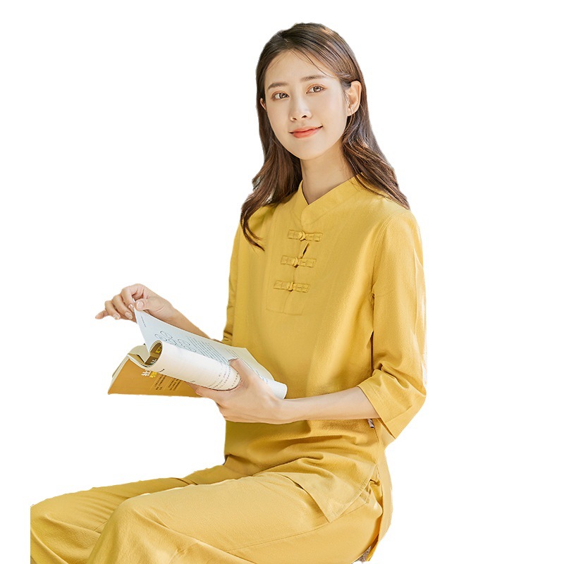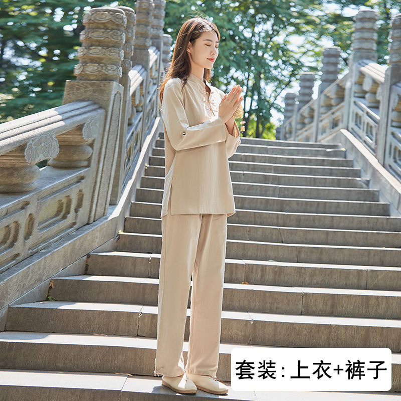 Хлопковая и льняная одежда для йоги, одежда для медитации, свободная одежда больших размеров, джуши, чайная одежда, Женская Улучшенная ханьфу, утолщенная на флисовой подкладке