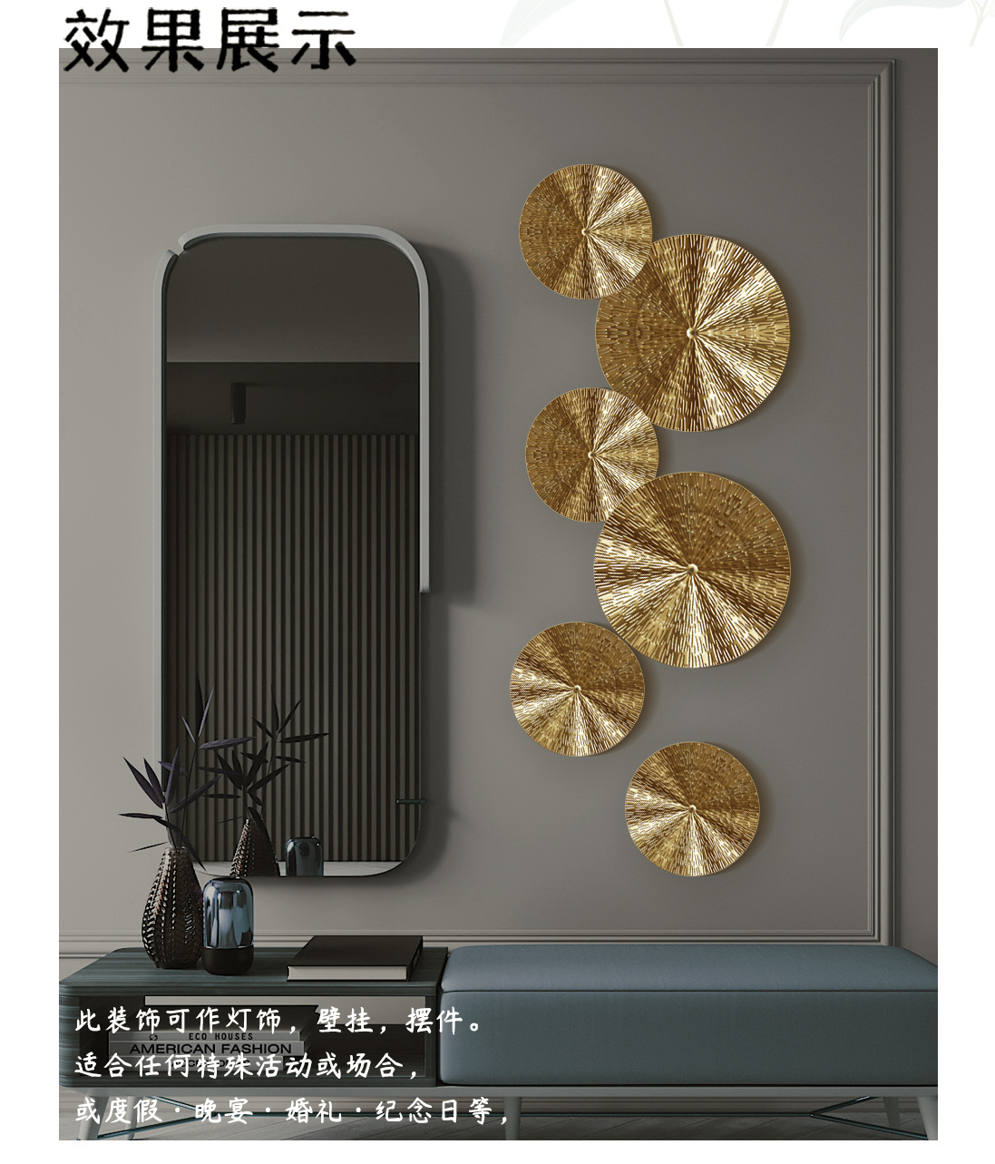 Настенное украшение из металла в стиле лёгкой роскоши, золотистый диск из железа, для дома.