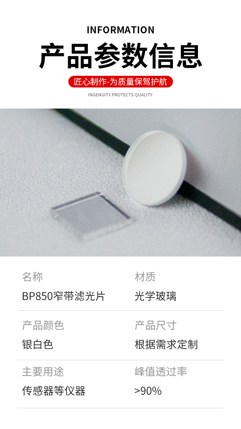 Оптически покрытый 850нм прозрачный УЛЬТРАКРАСНЫЙ узкополосный фильтр фильтра 850 для ультракрасного датчика