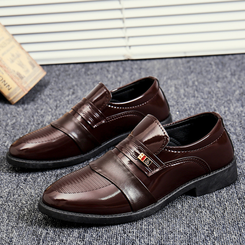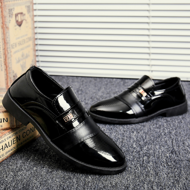 Кожаная обувь, Мужская Повседневная Деловая модельная кожаная обувь, дышащая Молодежная Черная мужская кожаная обувь, британская Корейская Свадебная мужская обувь