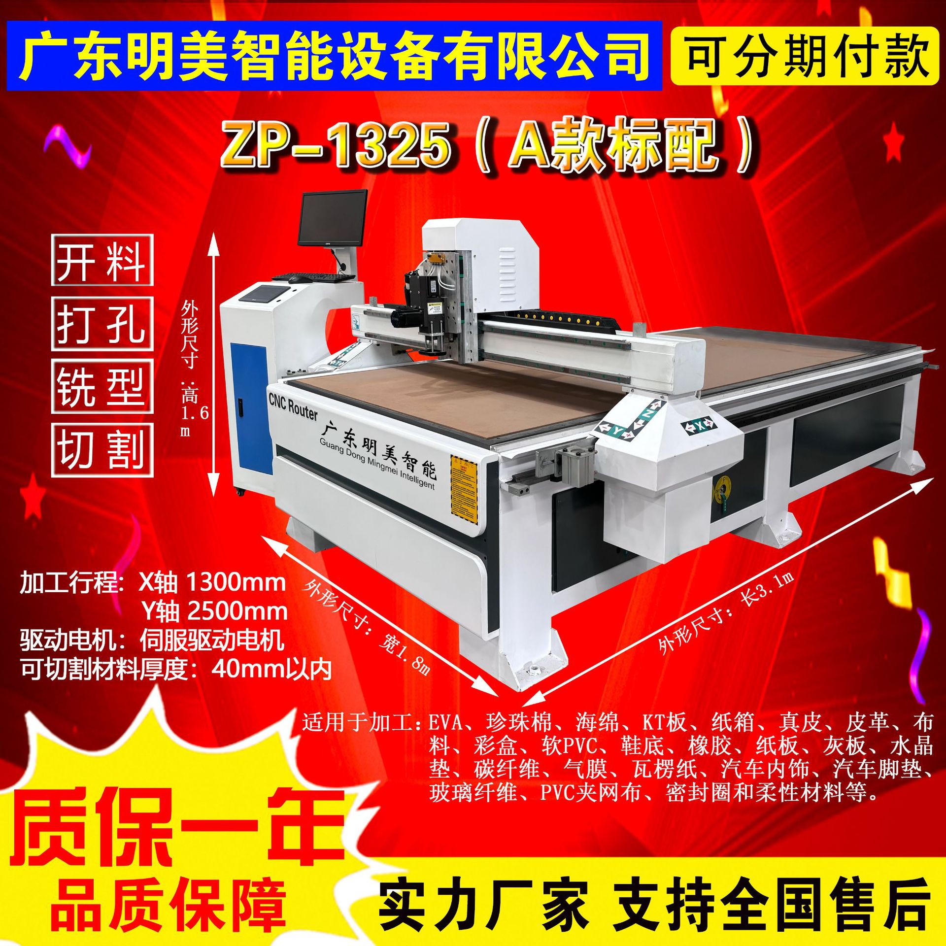ЗП-6090 (стандарт для модели А) (диапазон обработки 0.6m * 0.9m ); ЗП-1390 (стандарт для модели А) (диапазон обработки 1.3m * 0.9m ); ZP-1325 (специальная цена) (диапазон обработки 1.3m * 2.5m ); Быстроходный ZP-1625 (стандартная конфигурация для модели А) (диапазон обработки 1.6m * 2.5m ); Рекомендуем ZP-1625 (модель B Deluxe) Тайваньский сервопривод Delta (диапазон обработки 1.6m * 2.5m ); Настоятельно рекомендуем ZP-1625 (модель C Deluxe) сервопривод Panasonic, импортированный из Японии (диапазон обработки 1.6m * 2.5m ); Вибрационный ножевой станок (предоплата); оплатить заранее; Индивидуальная предоплата; Фреза однолезвийная 4*17
