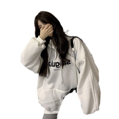 Новая женская толстовка с капюшоном 2025 года, на флисовой подкладке, утолщенная, свободного кроя в корейском стиле, универсальный и повседневный топ, тренд на Instagram.