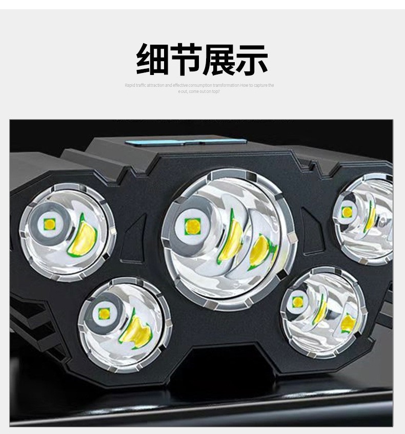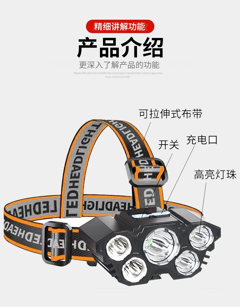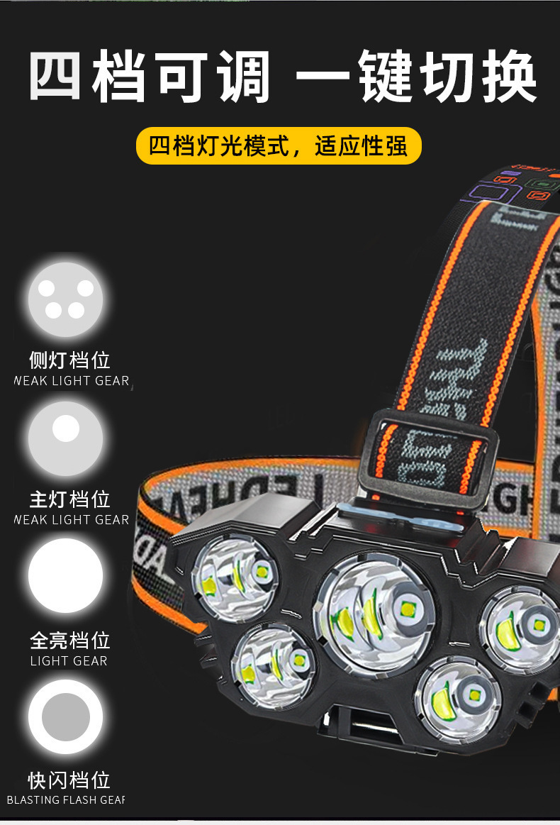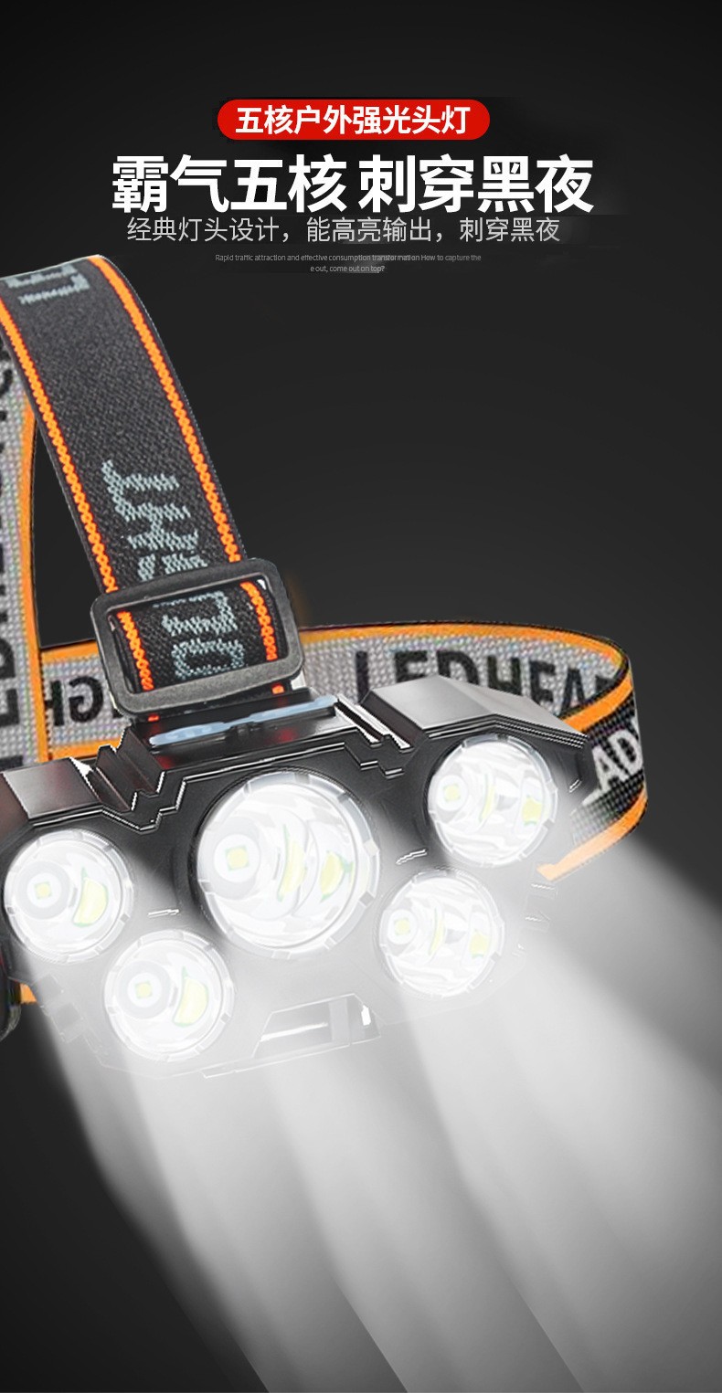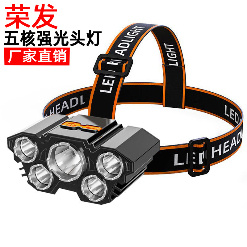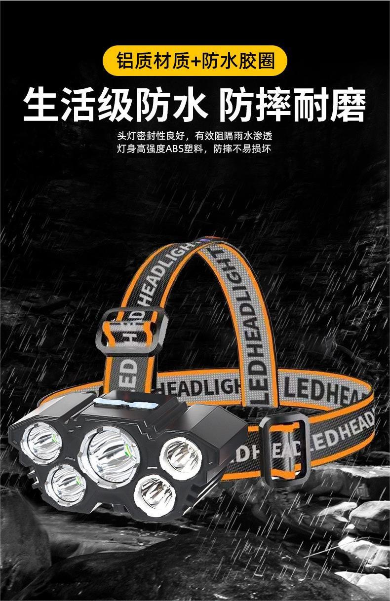 Трансграничная новая лампа с пятью головками, сильный свет, светодиодный налобный фонарь, перезаряжаемый налобный фонарь с USB для работы на открытом воздухе, кемпинг, ночная рыбалка, налобный фонарь