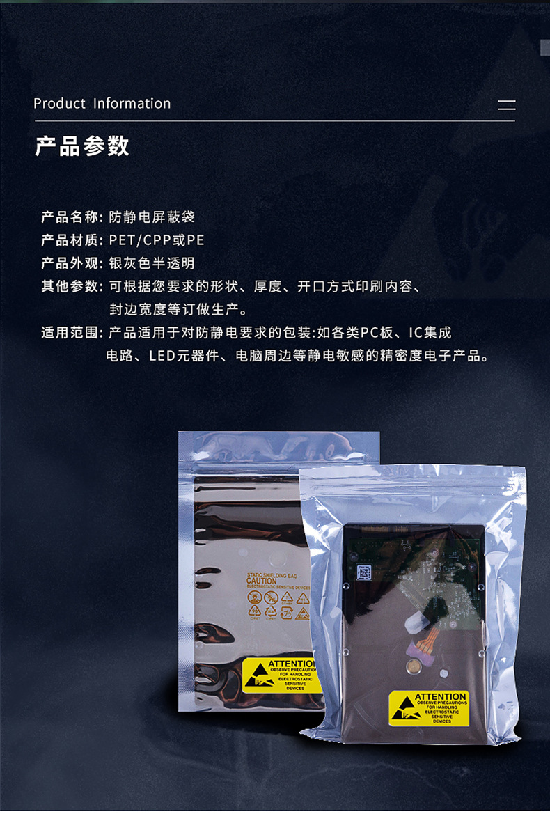Антистатическая сумка ESD, материнская плата, жесткий диск, видеокарта, цифровое устройство, антистатическая упаковочная сумка, светодиодная антистатическая плоская сумка