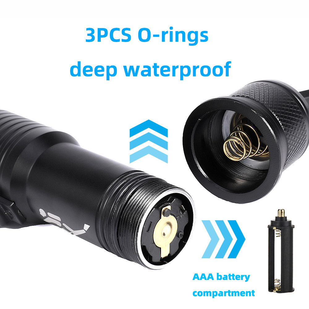 Трансграничный новый погружной фонарик магнитный переключатель T6 профессиональный дайвинг портативный 18650AAA алюминиевый фонарик