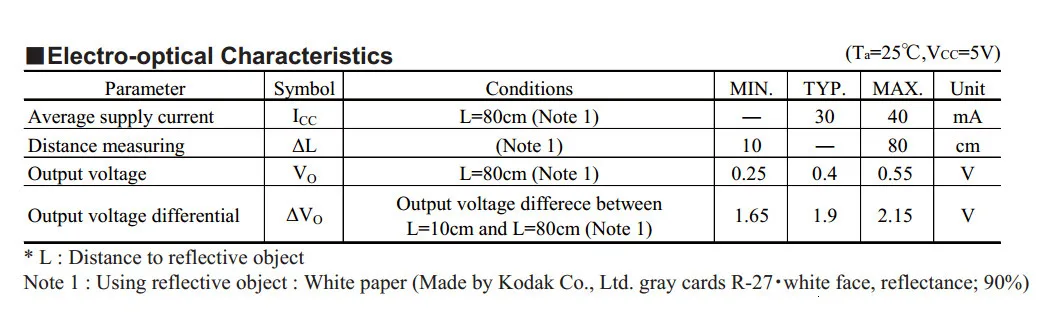 1.距离测量范围:10~80厘米