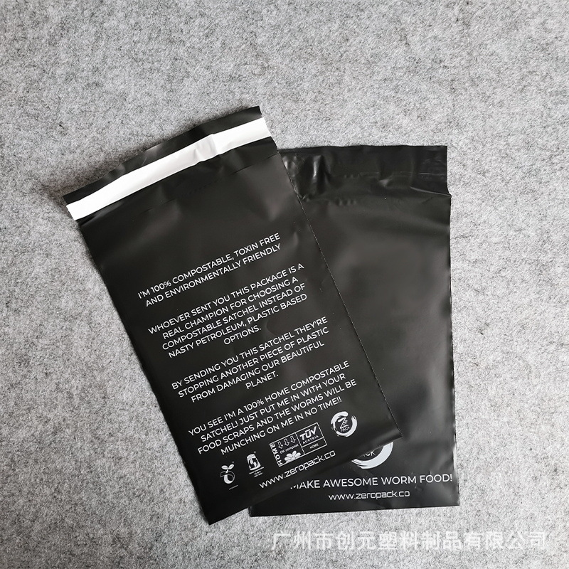 Производители из Гуанчжоу поставляют черные экологичные курьерские пакеты, биоразлагаемые курьерские пакеты из PLA, разрушаемые пакеты с персонализированной печатью.