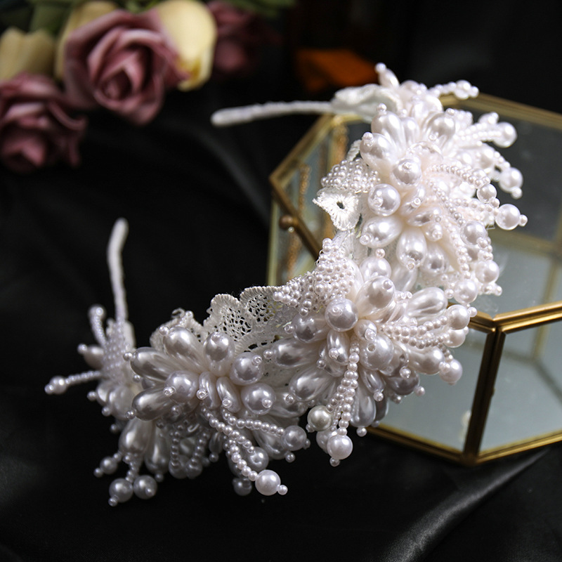 Европейская и американская Свадебная повязка для волос жемчуг ручной работы головной убор цветок бант свадебная корона Церковь Свадебные аксессуары для волос