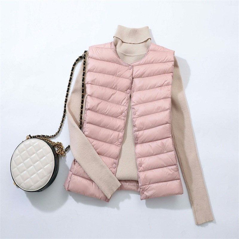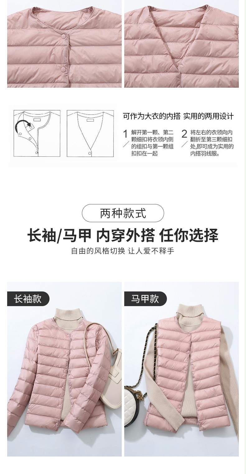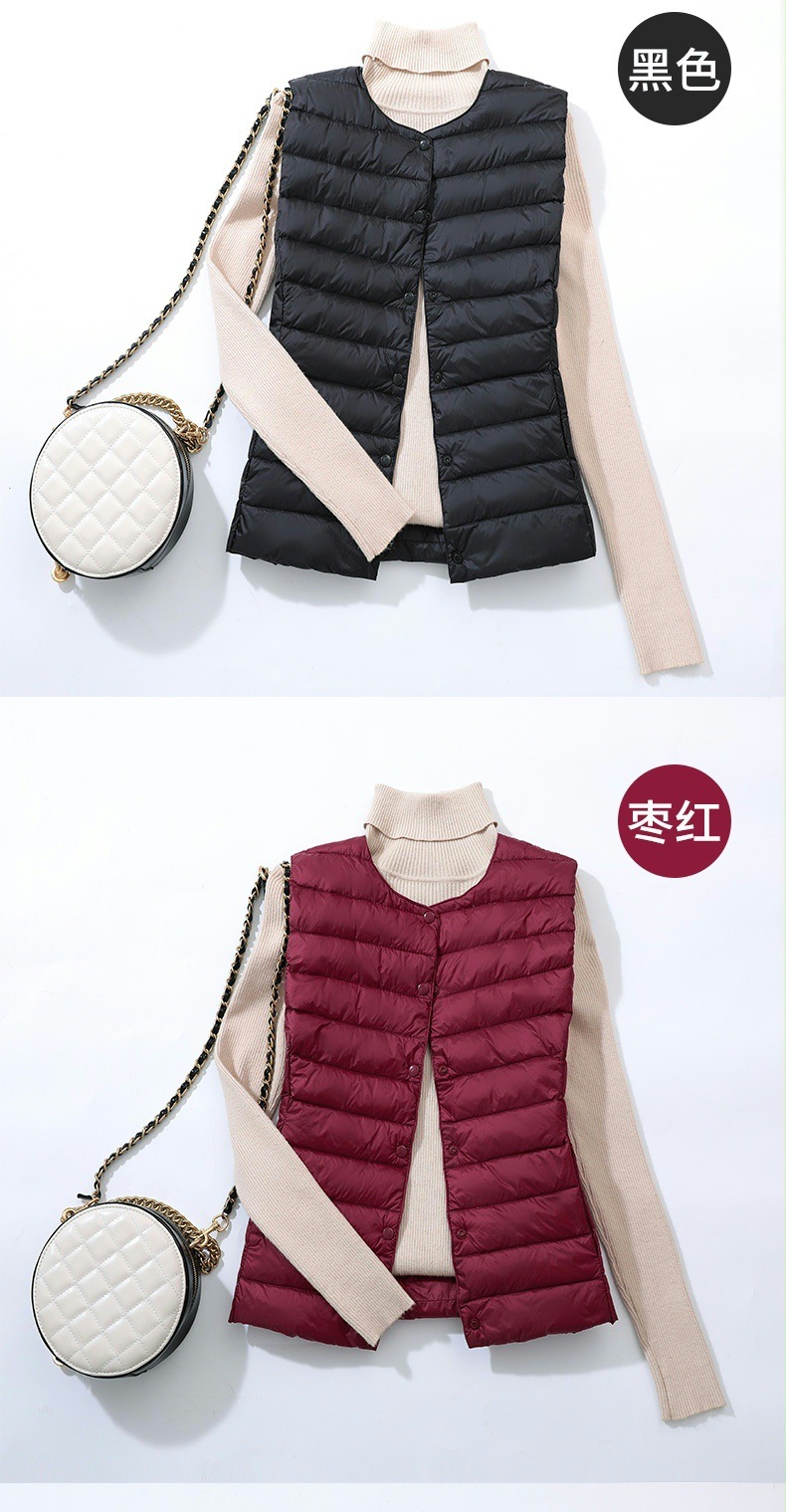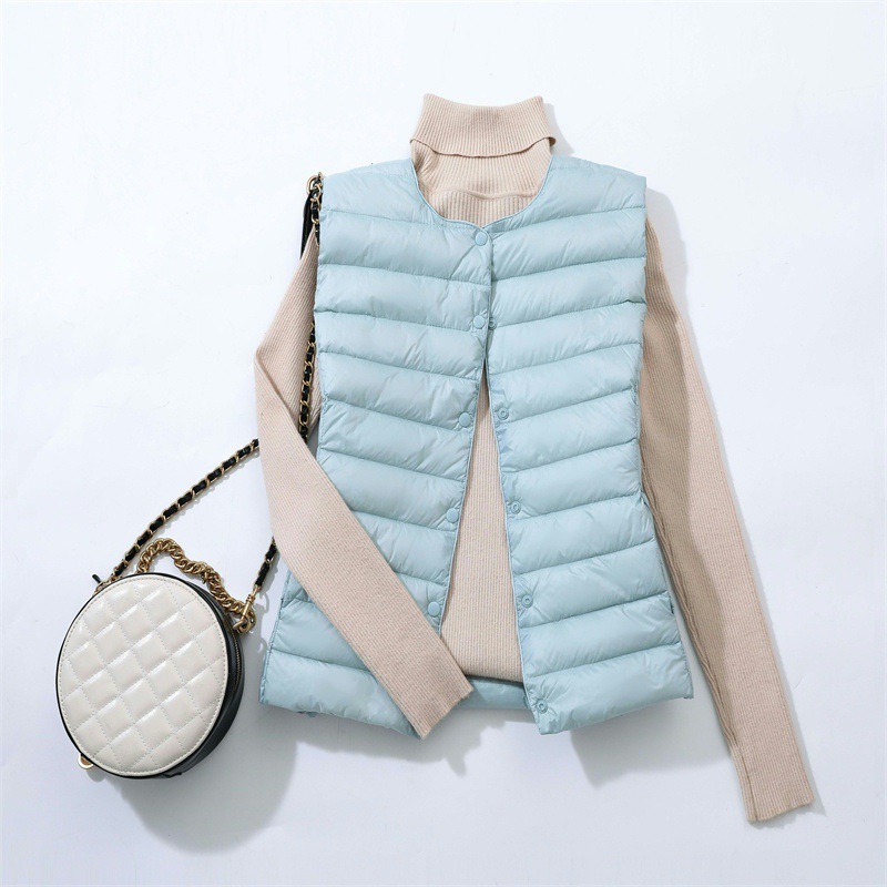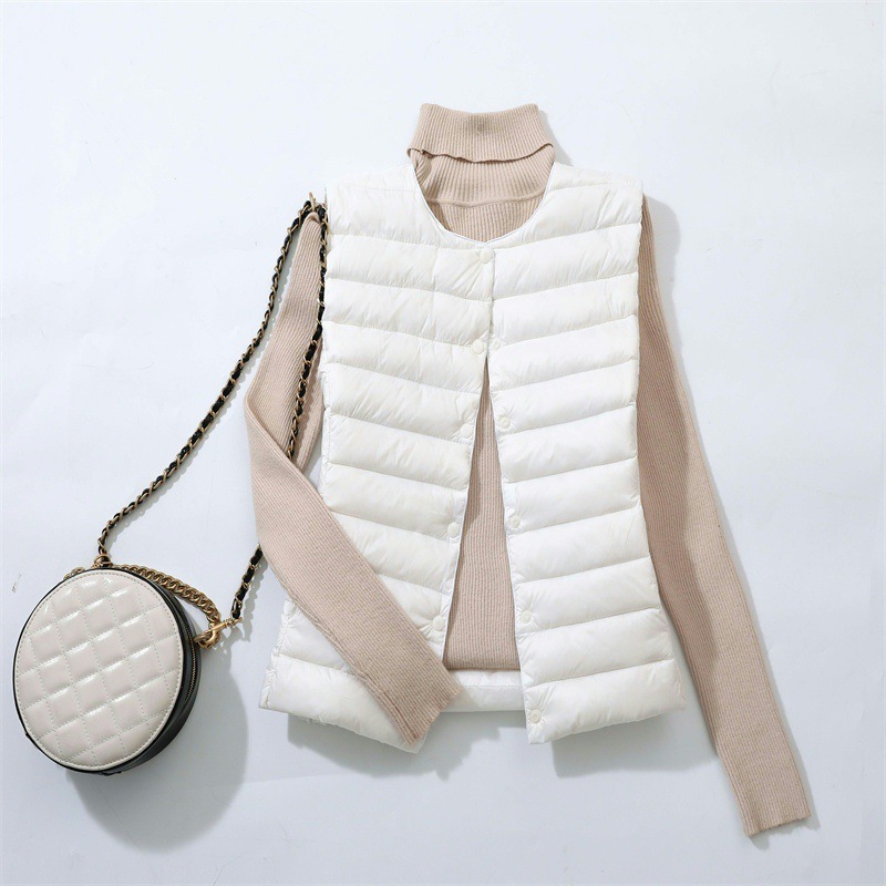 2021 новый легкий пуховик, женский белый утиный пух, осенне-зимний подкладка, круглый вырез, V-образный вырез, двойная приталенная куртка, жилет