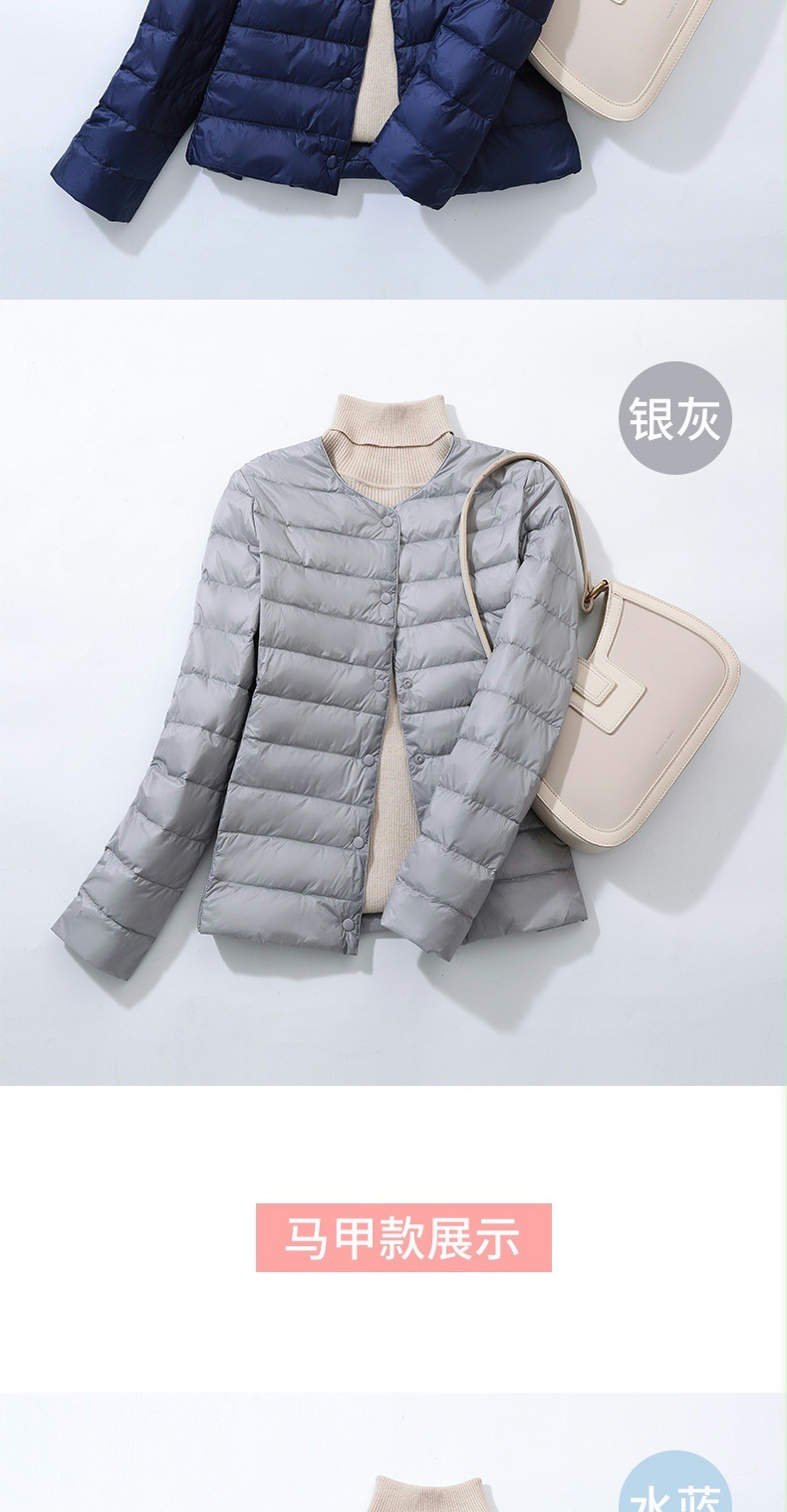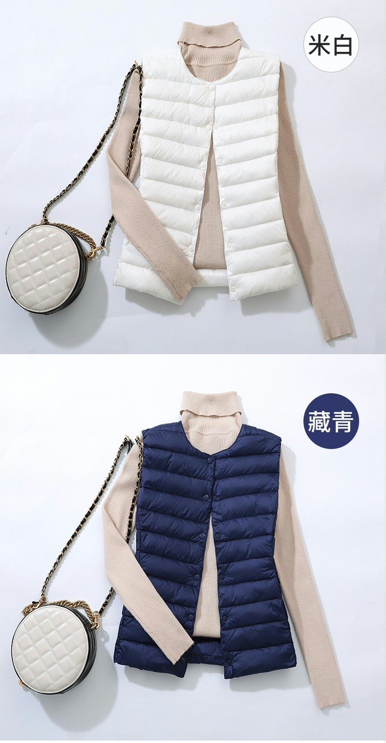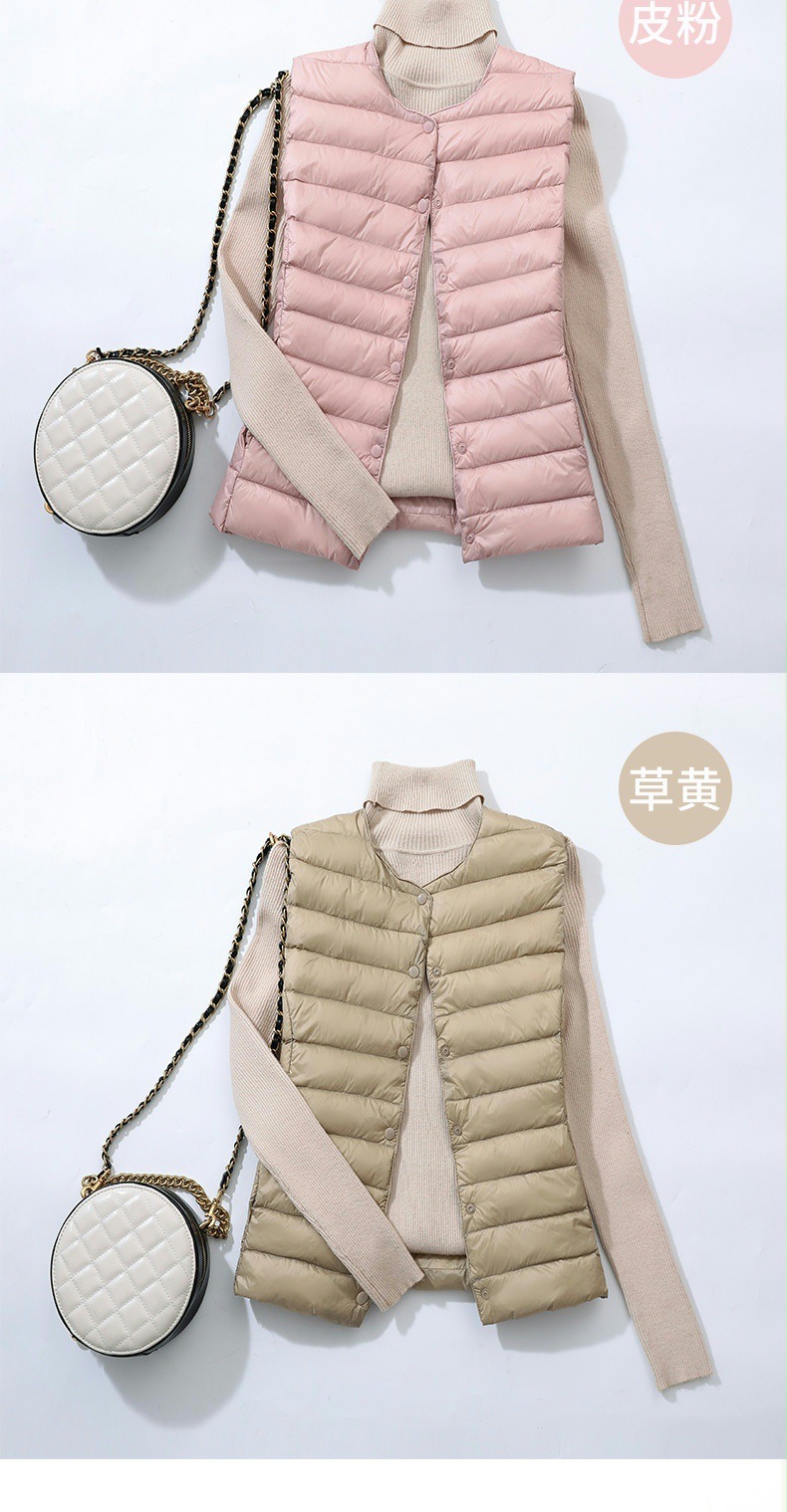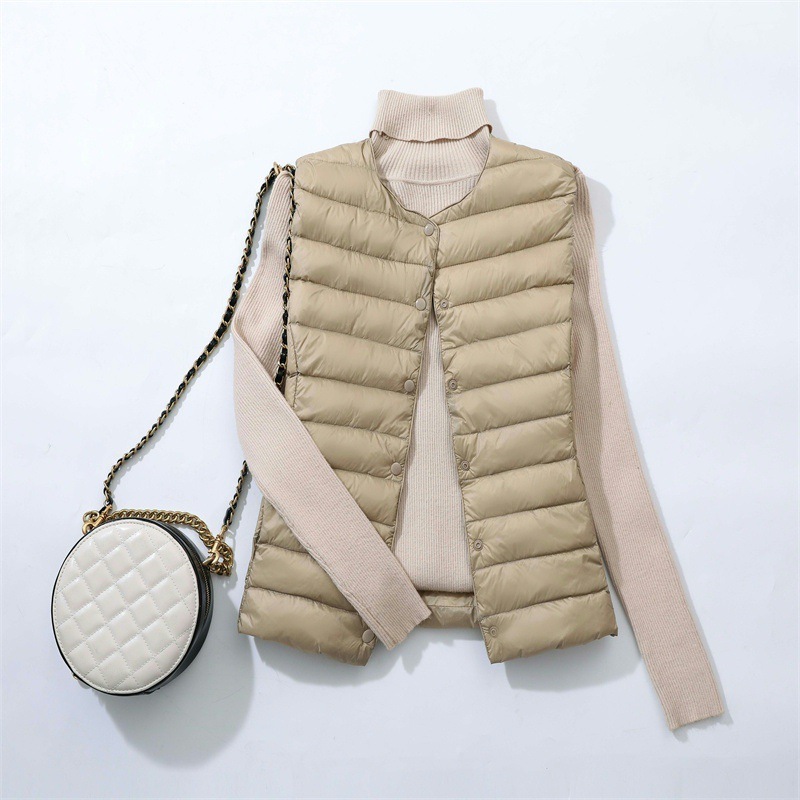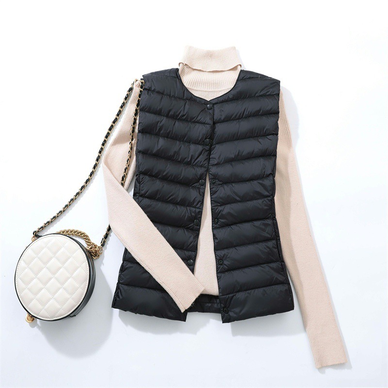 2021 новый легкий пуховик, женский белый утиный пух, осенне-зимний подкладка, круглый вырез, V-образный вырез, двойная приталенная куртка, жилет