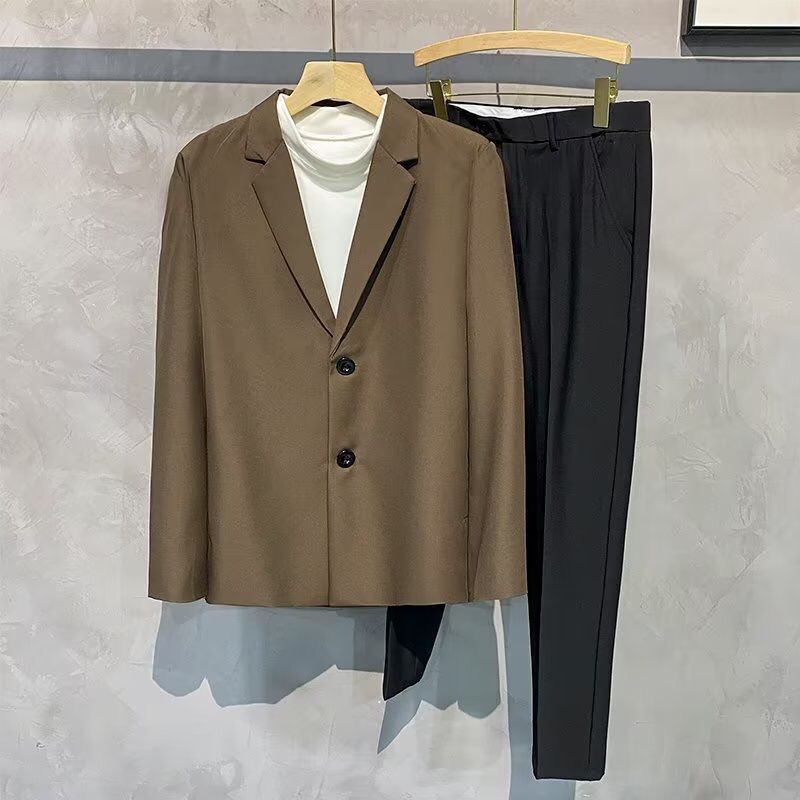 Повседневный пиджак, Мужская Весенняя приталенная одинарная куртка в стиле вестерн, мужской универсальный модный однотонный маленький костюм в Корейском стиле Yuppie