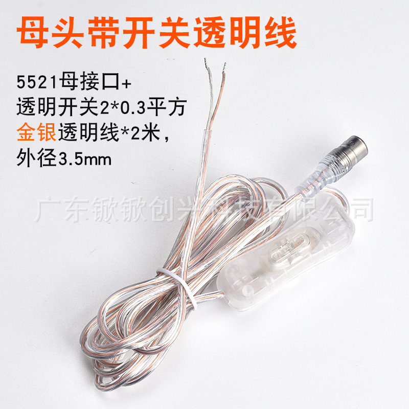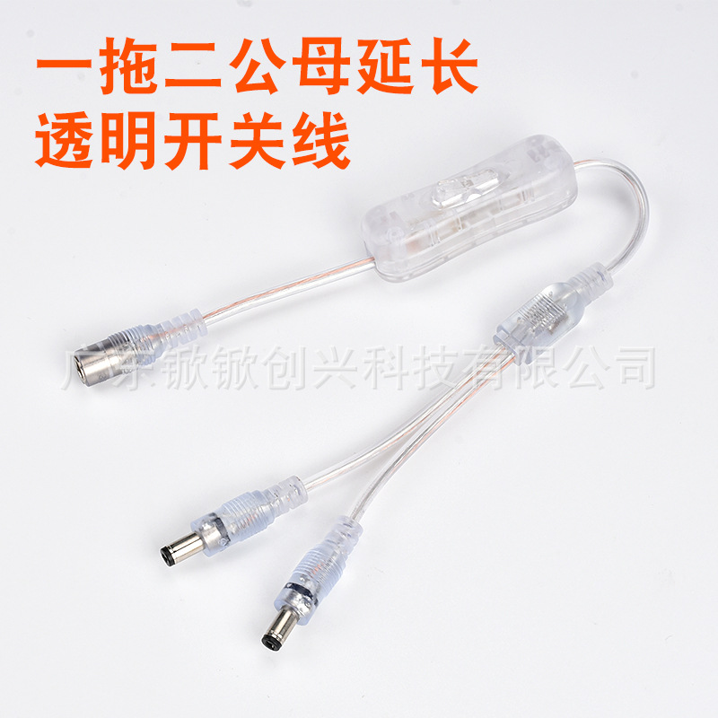 DC带开关透明线一拖二DC控制线Y型灯具电源线霓虹灯连接线可定制: