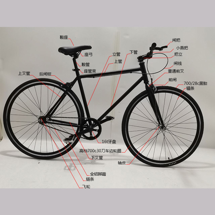 - 700C单速30刀车边圈死飞车主要技术参数: