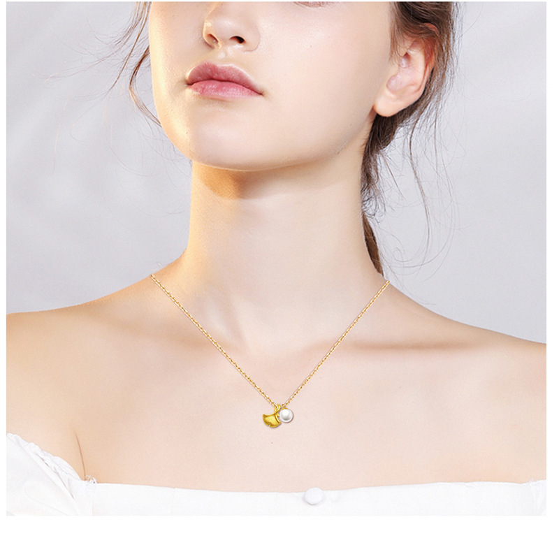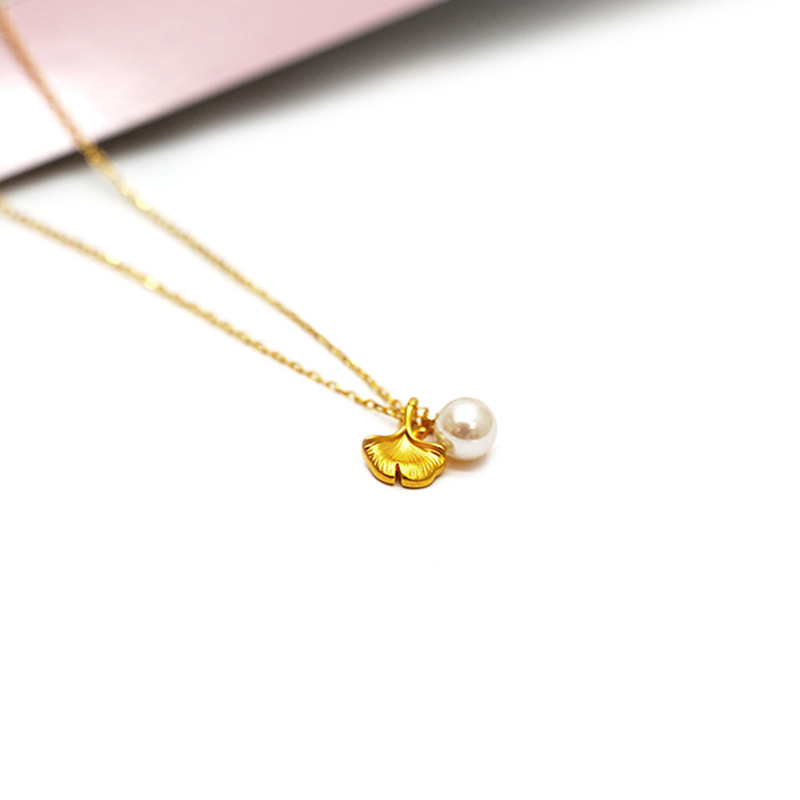 Корейское ретро-ожерелье с натуральным жемчугом, золотым листом гинкго, корейская версия, популярное золотое украшение для блогеров и интернет-знаменитостей, популярное в прямой трансляции