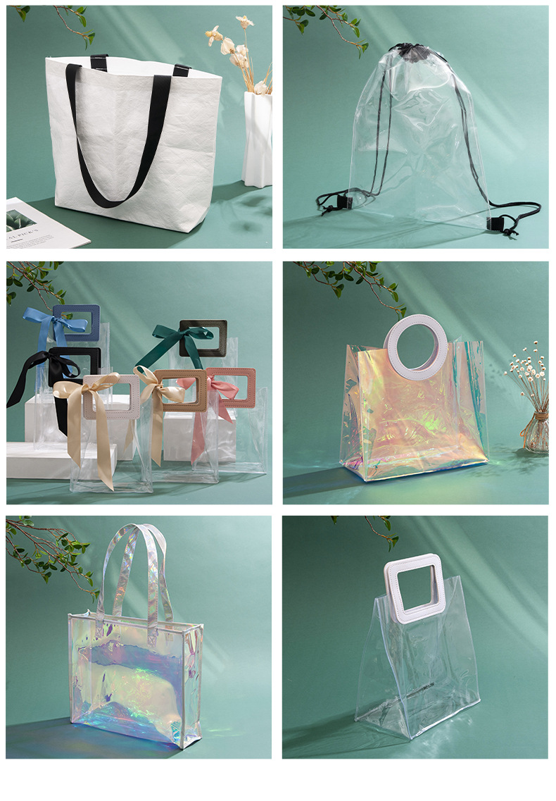 Сумка-шоппер с лазерной гравировкой на заказ, прозрачная радужная пластиковая сумка, модная сумка для покупок, красочная сумка-желе, сумочка