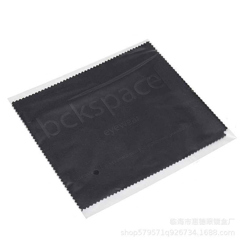 麂皮绒230克双磨18*18CM锯齿边双磨丝印黑色三折OPP包装