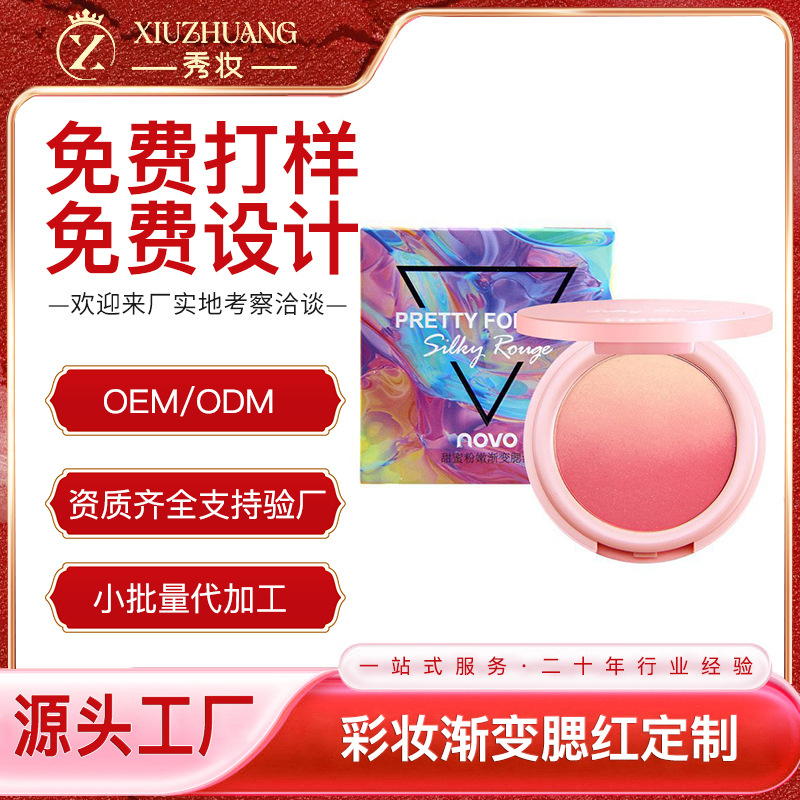 Производство градиентных румян OEM, двухцветная палетка румян для контуринга с натуральным эффектом, производство румян OEM, натуральный нюдовый макияж