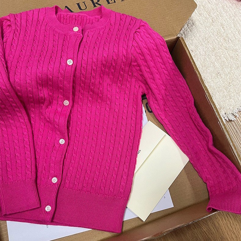 Твист-кардиган темно-синего цвета; Кардиган цвета драконьего фрукта; Розовый твист-кардиган; Желтый кардиган