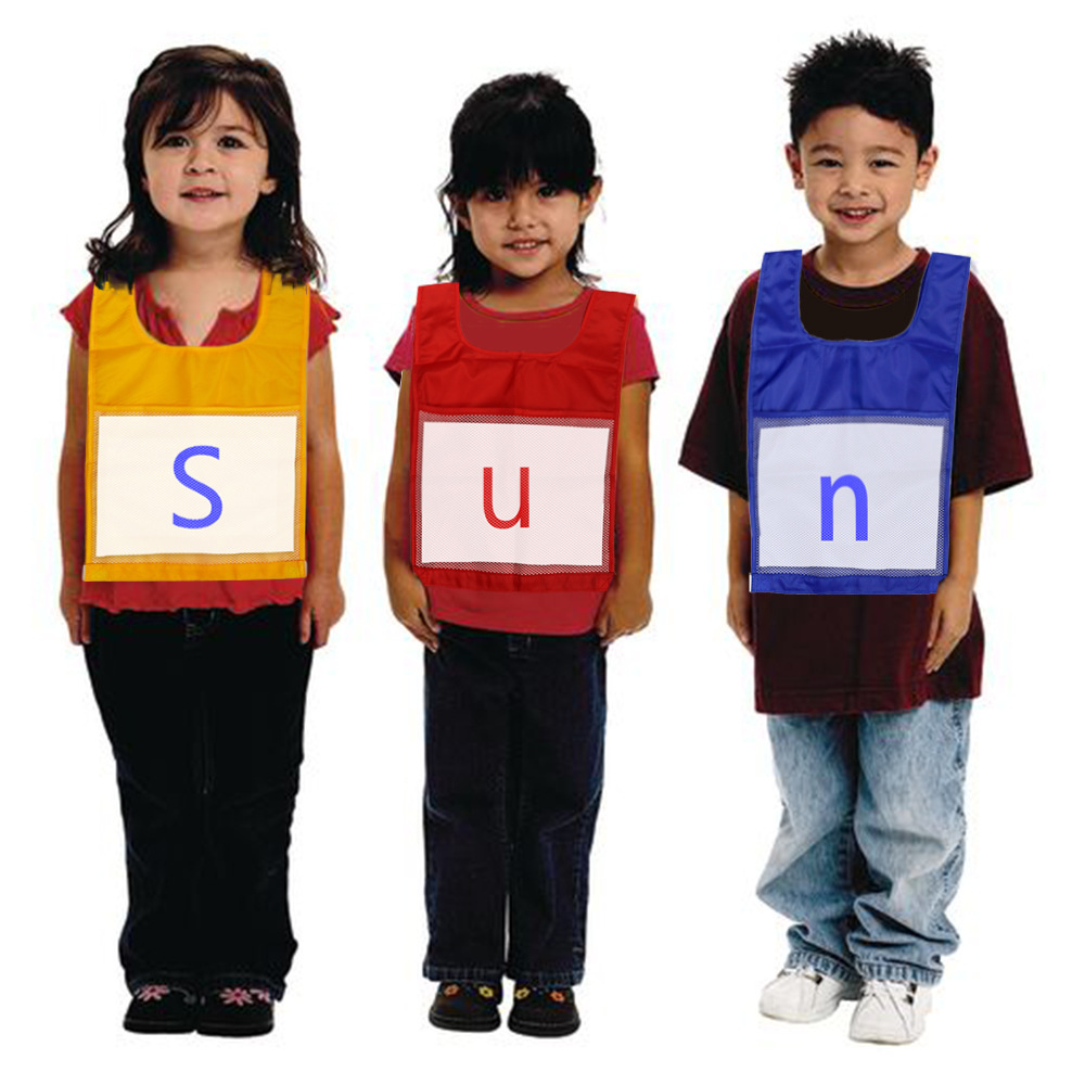 这个背心由牛律布车缝而成,前后搭上网袋,充分利用你打印的活动卡,通过穿戴字母的背心,练习字母学习和单词构建,每件背心打印小写字母在前面,大写字母在后面。元音用红色表示,常量用蓝色表示。以扩大你的学生可以拼写的单词数量。要求学生用字母背心将自己排成单词。你可以打印活动数字卡,用来发展算术技能,打印0-20数字,点数组和数字单词,还有物体的彩色照片,打印 + - > < 操作符号,使之成为在室内和室外进行各种活动和引人注目的计算活动的理想选择。