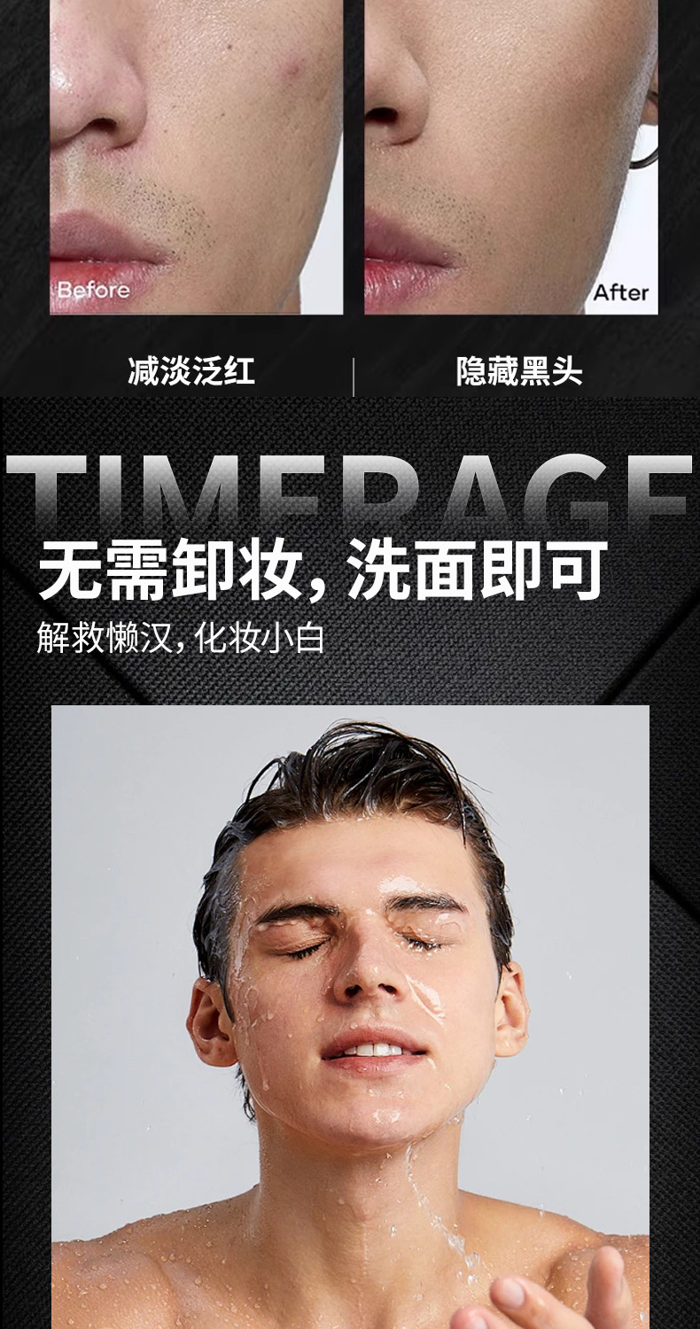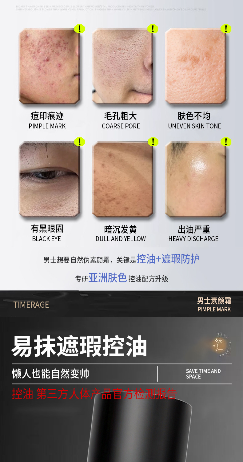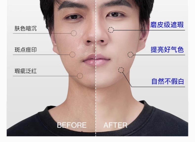 Мужской тональный крем BB-крем, консилер, маскирует следы акне, контролирует жирность, естественный финиш, без эффекта отбеливания, жидкая основа, специально для нанесения подложного макияжа, оптом.