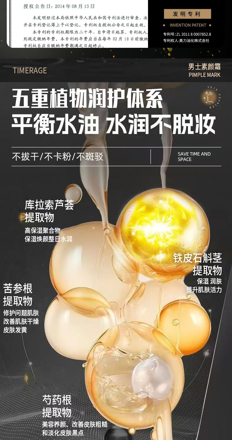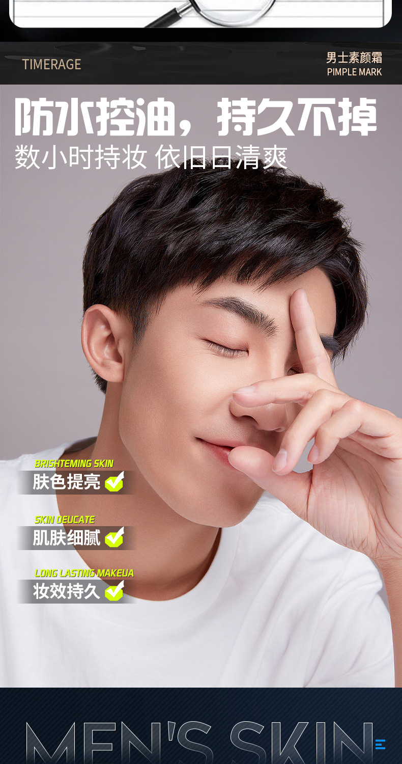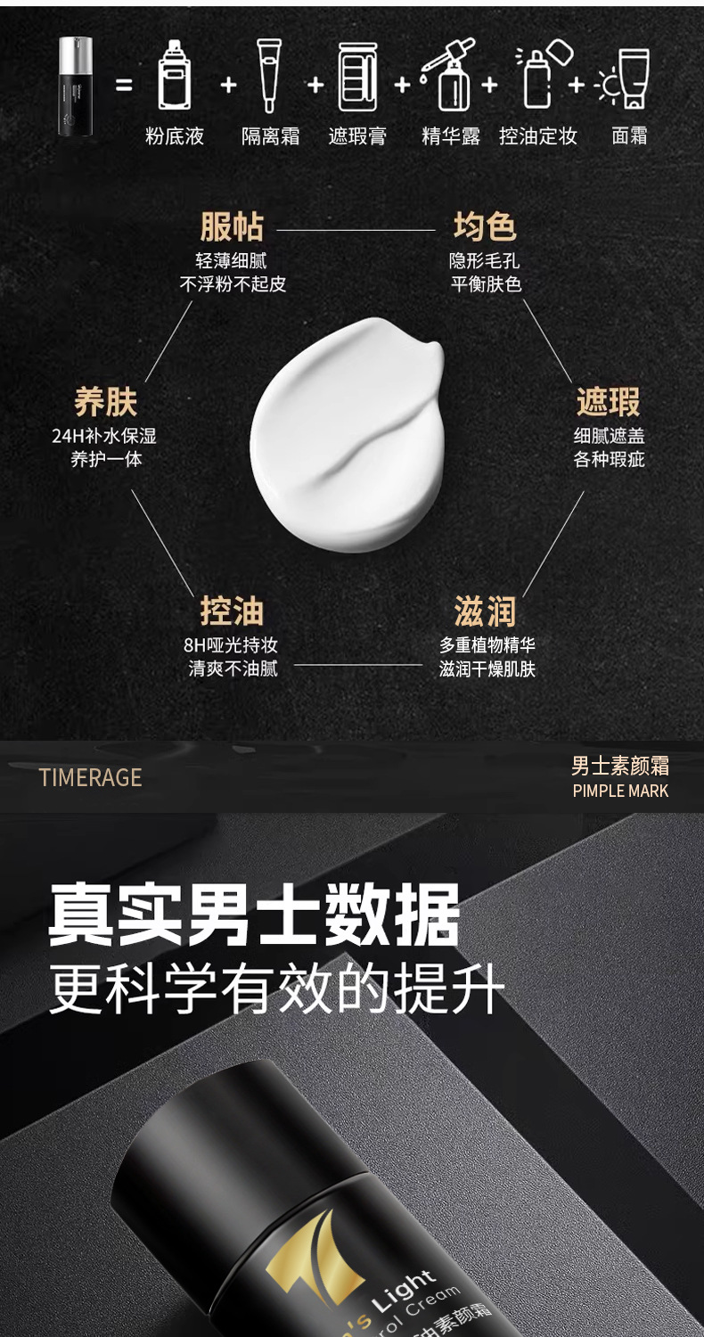 Мужской тональный крем BB-крем, консилер, маскирует следы акне, контролирует жирность, естественный финиш, без эффекта отбеливания, жидкая основа, специально для нанесения подложного макияжа, оптом.