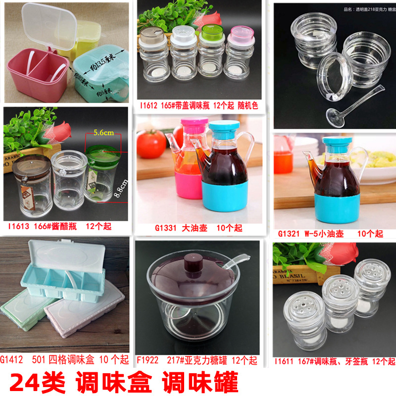 F1 724 218 Акриловая банка Чили; F1 922 217 # акриловая сахарная банка; G1321 W-5 маленький масляный горшок; G1331 большой масляный горшок; Коробка для приправ с четырьмя отсеками G1 412 501; G1634 Европейская двухсетчатая коробка для приправ; I1 611 167 # Бутылки для приправ; I1 612 165 # Бутылка для приправ с крышкой; I1 613 166 # соус и уксус бутылка; D1544 Одноразовая бутылка для приправ из нержавеющей стали; Бутылка для специй из стекла I1441; L2343 Многофункциональная банка для специй из нержавеющей стали; G1512 8273 трехсекционная коробка для специй