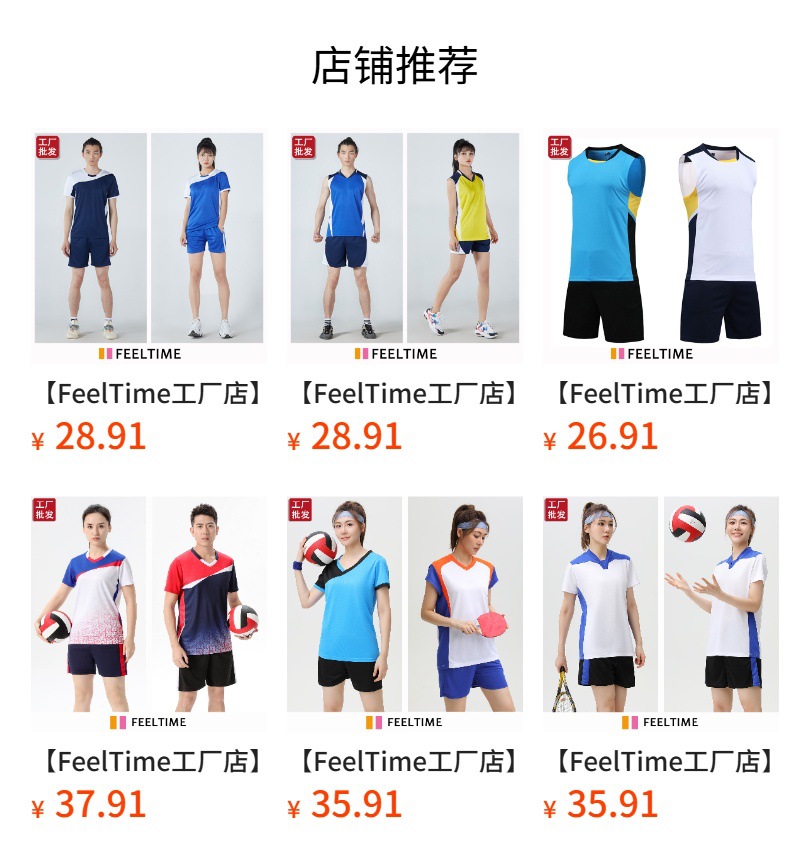 [FeelTime Factory Store] Оптовые быстросохнущие дышащие мужские и женские костюмы с короткими рукавами Одежда для тренировок и соревнований Одежда для воздушного волейбола