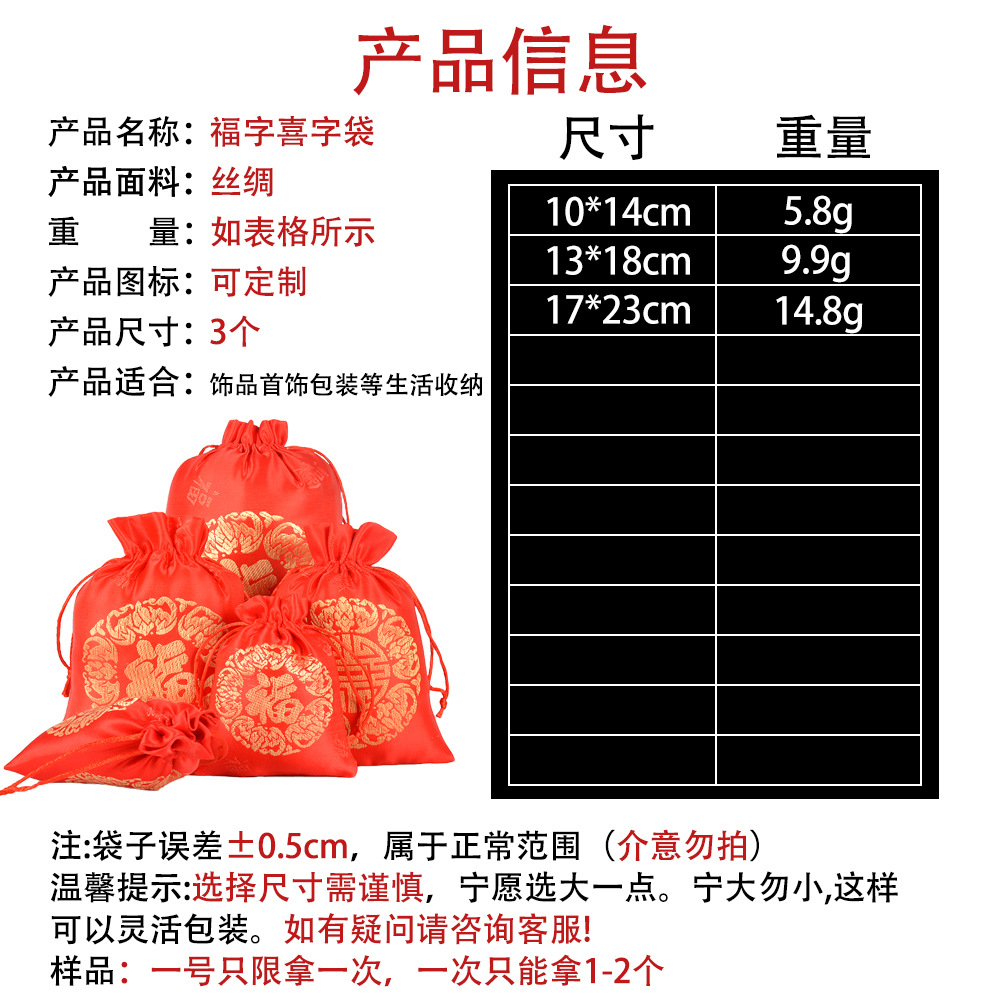 【产品名称】锦缎喜糖福字袋