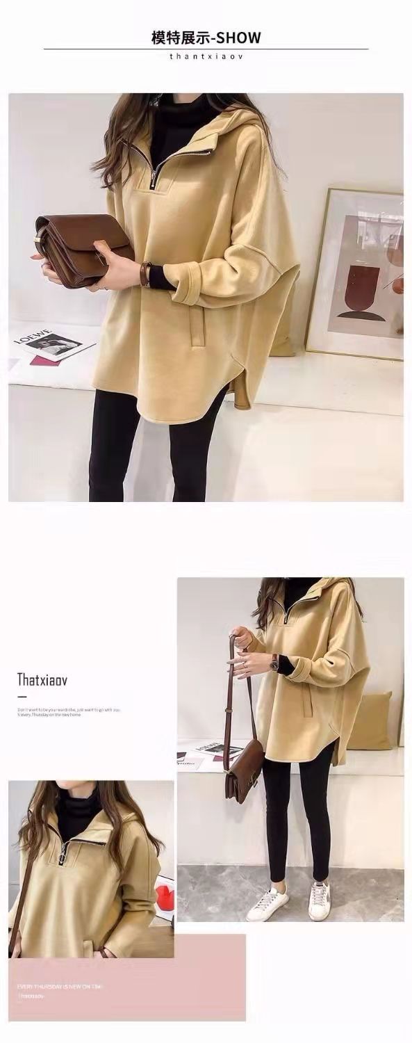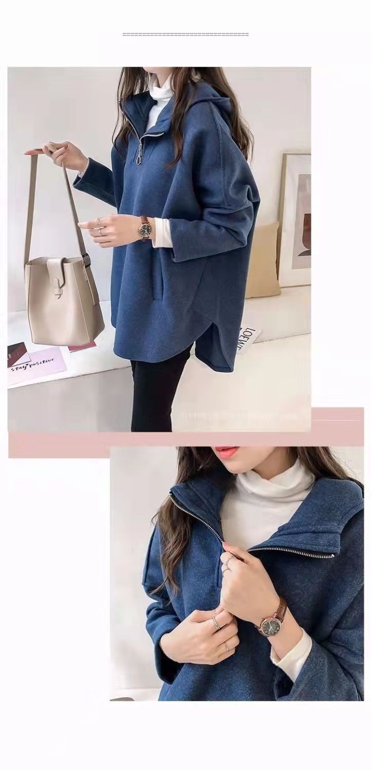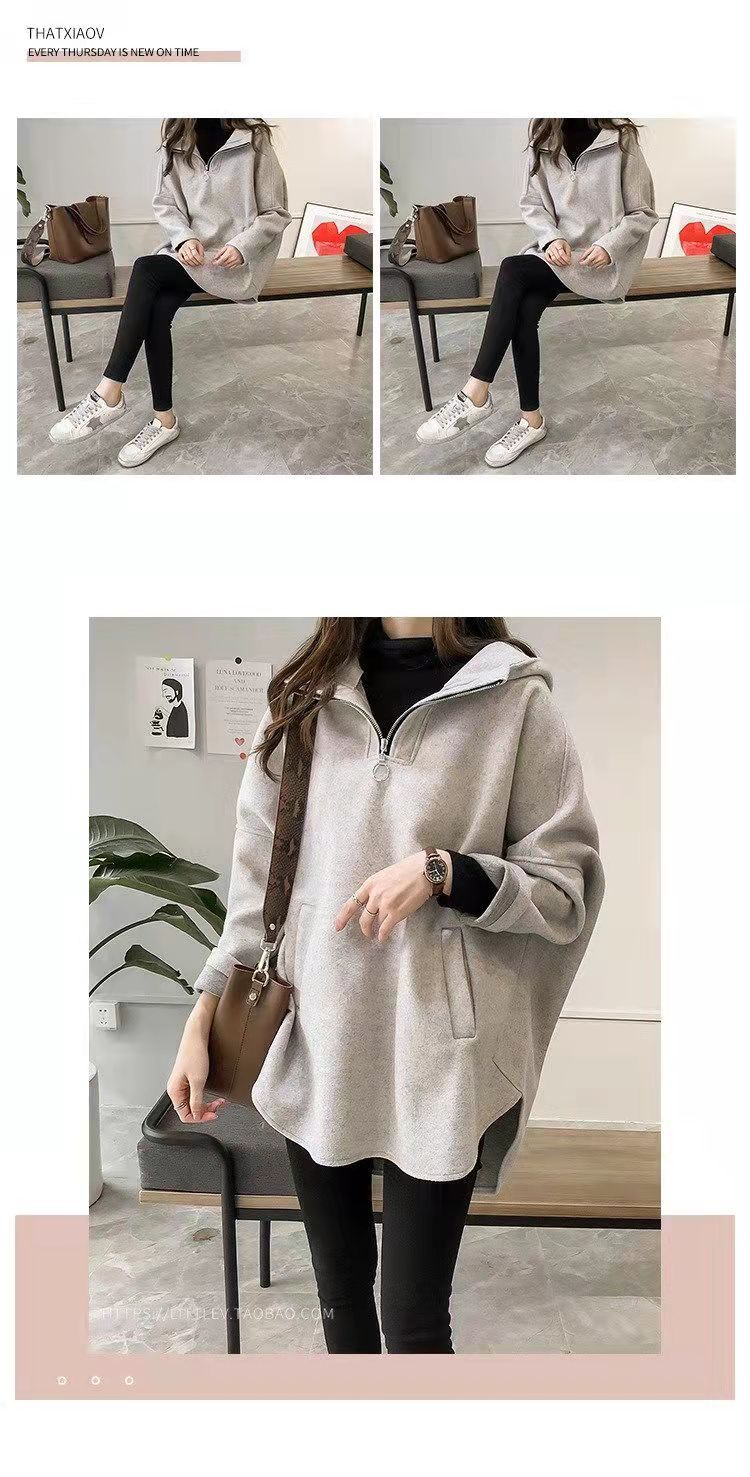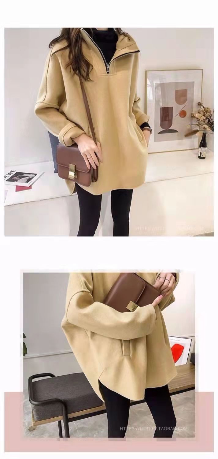 2023 осень и зима Новая Корейская версия свободного однотонного длинного утолщенного тонкого свитера на молнии с капюшоном на флисовой подкладке