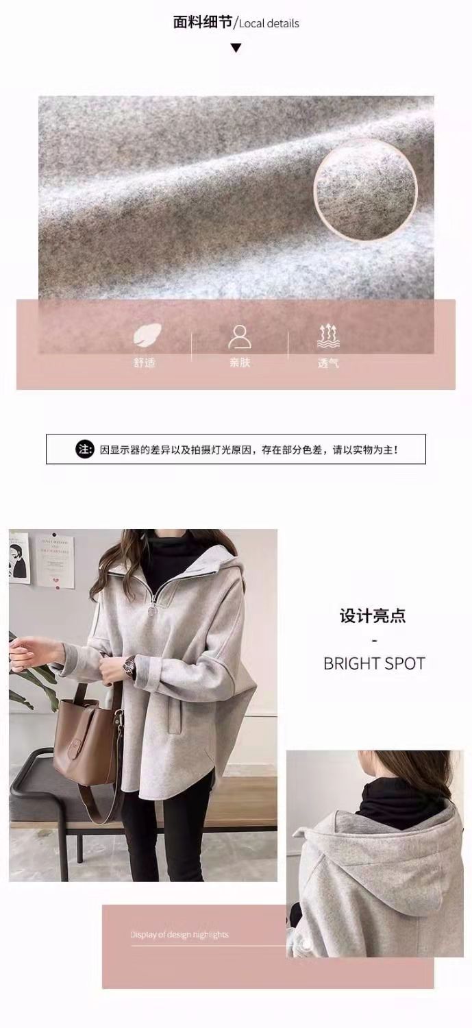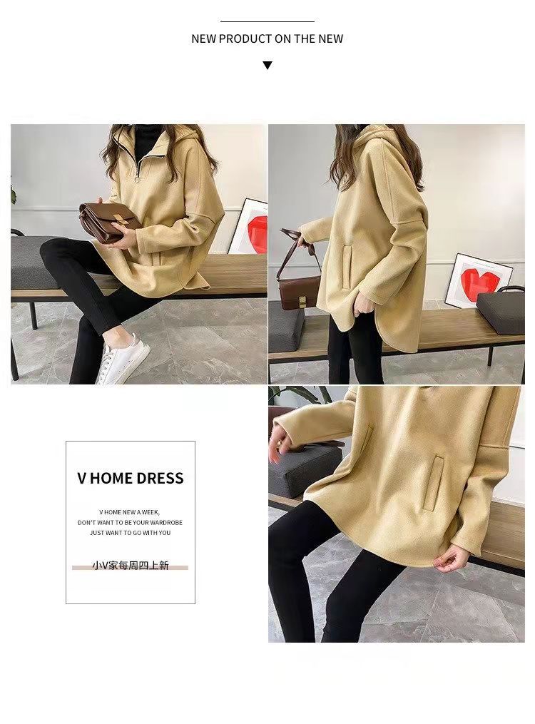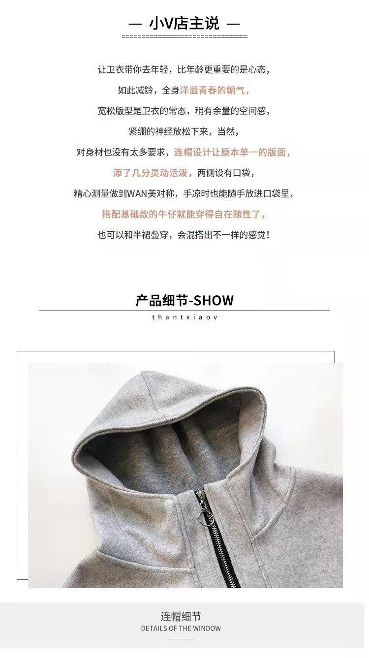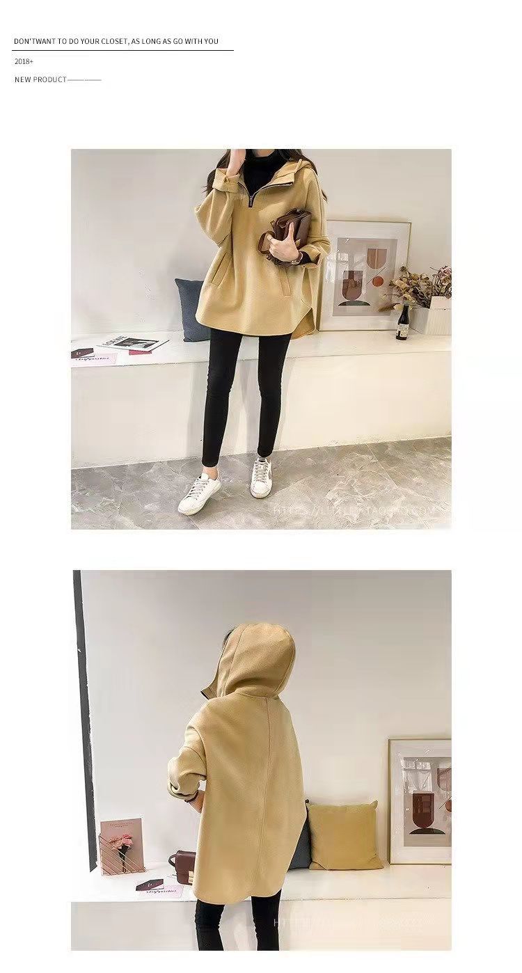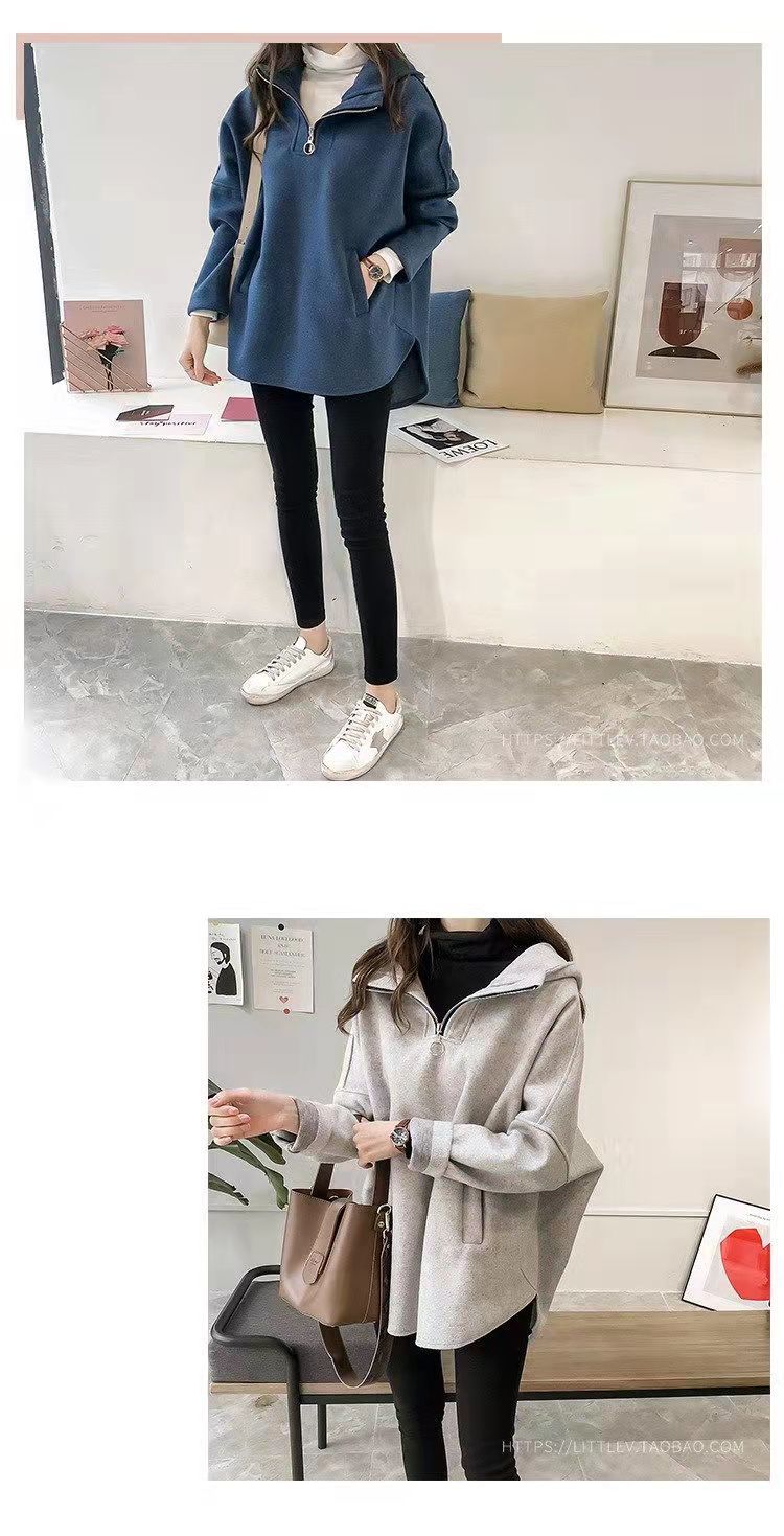 2023 осень и зима Новая Корейская версия свободного однотонного длинного утолщенного тонкого свитера на молнии с капюшоном на флисовой подкладке
