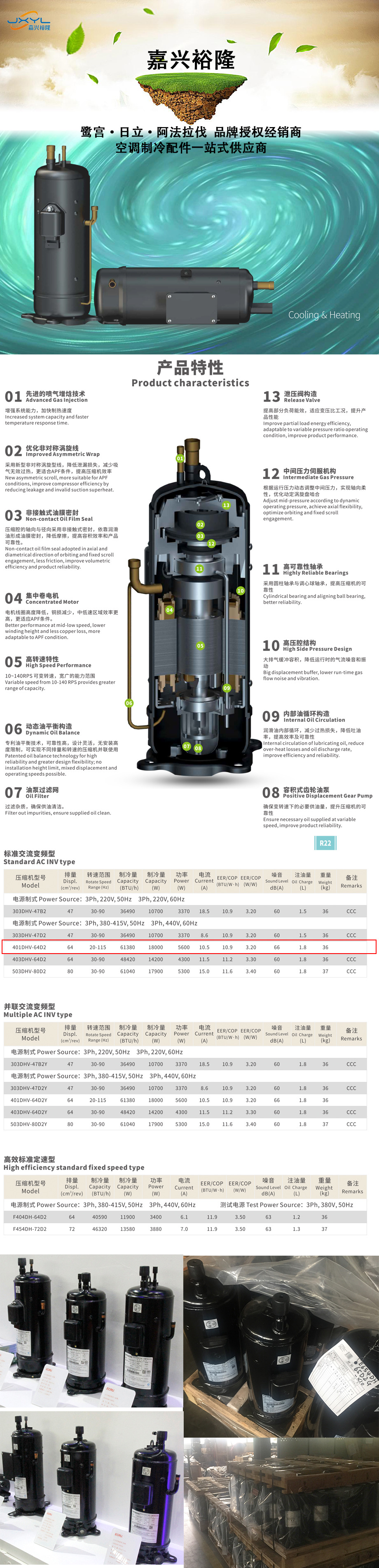 Компрессор Hitachi 401DHVM-64D1 Кондиционер Hisense Hitachi 8 HP Компрессор кондиционера с преобразованием частоты переменного тока