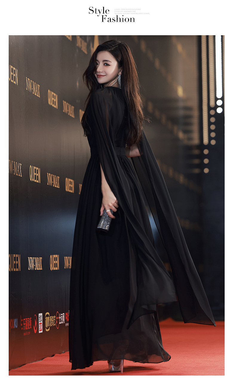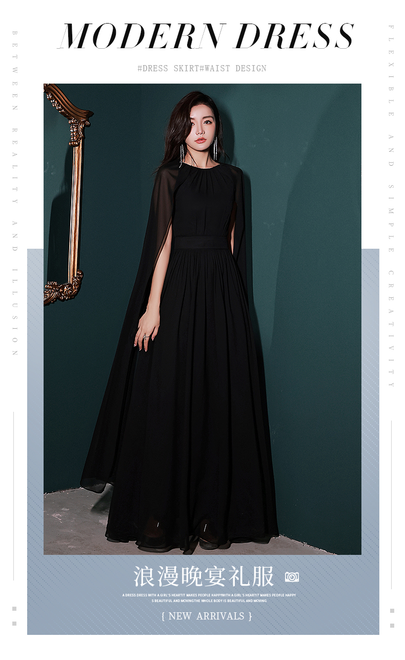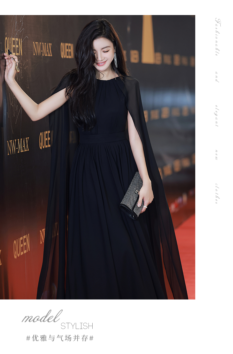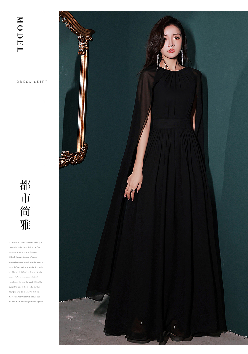 Вечернее платье женский 2025 новый банкет темперамент легкий и экстравагантный нишевый черный длинный элегантный ежегодное платье платье