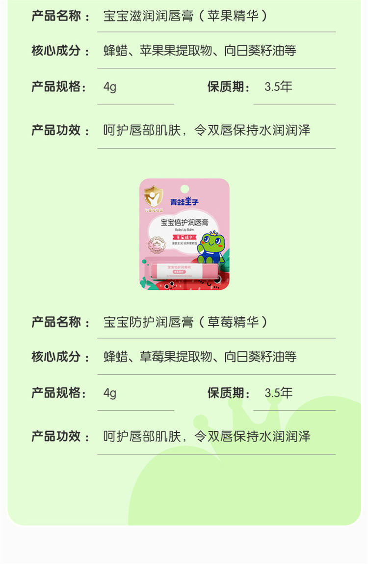 4 г бальзам для губ Baby Care [клубничная эссенция]; 4 г детский увлажняющий бальзам для губ [Яблочная эссенция]; 51 г детский увлажняющий крем для омоложения кожи [эссенция свежего молока]; 51 г детский мягкий увлажняющий крем [клубничная эссенция]; 15 г детский увлажняющий крем Excellent Care [портативный флакон]; 40 г Детский увлажняющий крем Excellent Care [Увлажняющая и фиксирующая вода]; 60 г детского успокаивающего увлажняющего крема Beirun [масло семян ореха + молоко]; Двойной увлажняющий детский увлажняющий крем 60 г [Календула + Портулак]; Увлажняющий крем Four Seasons Premium Care, 360 мл [Подходит для всей семьи]; 30 г детского увлажняющего крема [Доступно для детей от 0 лет]; 30 г детский увлажняющий крем [эссенция свежего молока]; 30 г детский увлажняющий крем-пакет [Клубничная эссенция]