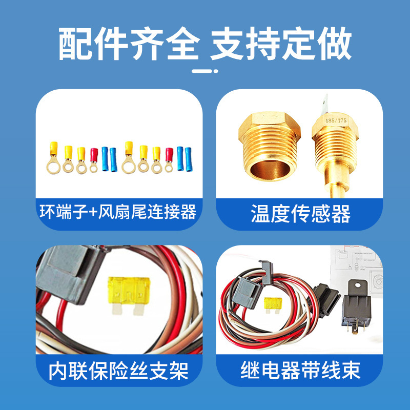 40A 双风扇继电器套件,带颜色编码的电线,方便安装(包装中包含接线图)。
